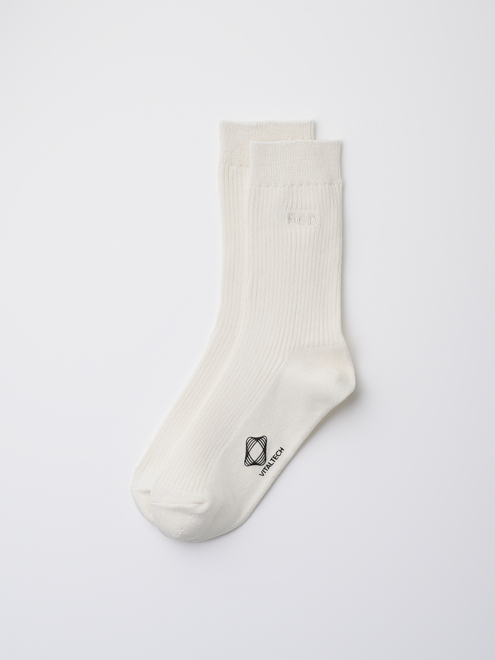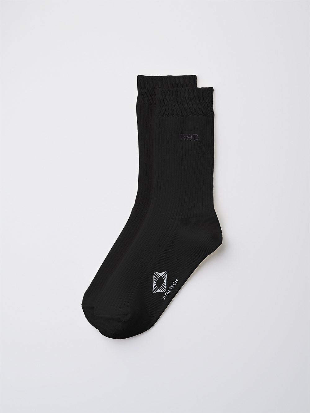 天然鉱石を原料とした高純度セラミックを糸に練りこんだ独自の特殊繊維VITALTECHを使用したソックスです。