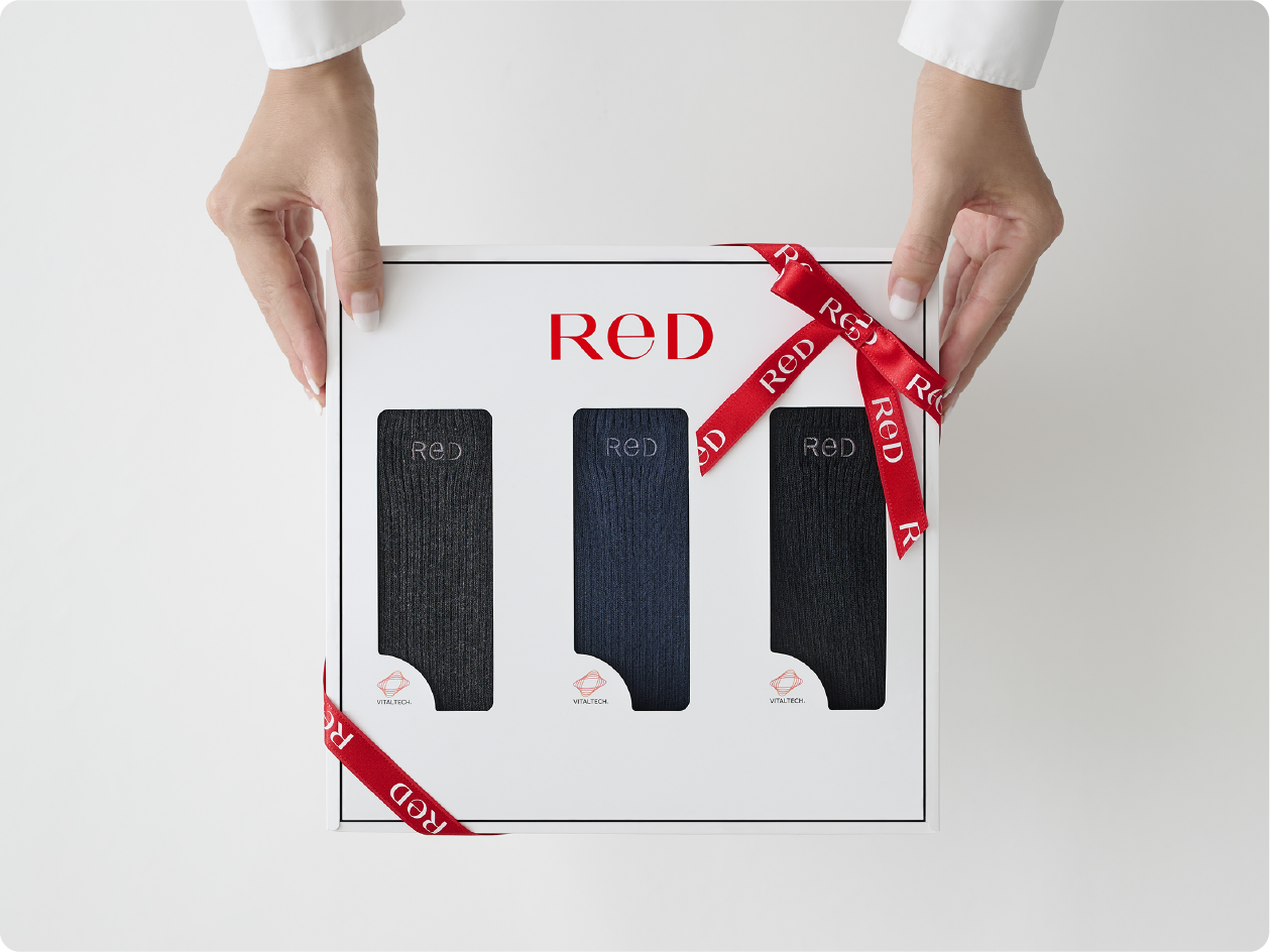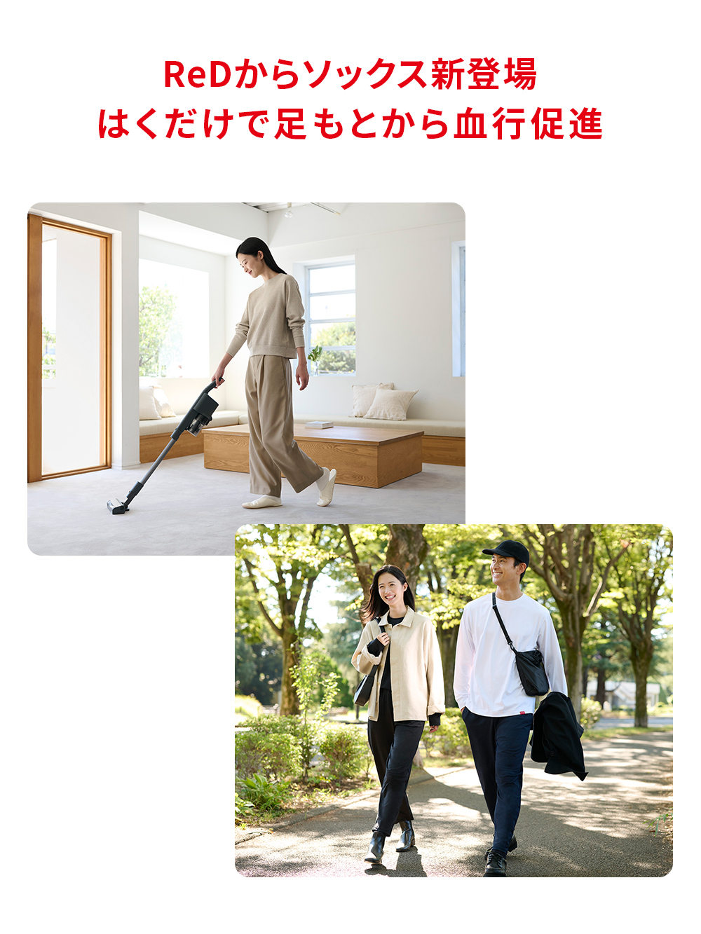 寒さにより冷えやすい足もとから気軽に血行促進。寒い冬のお出かけ中も活躍します。はじめてのReDとしてもオススメです。