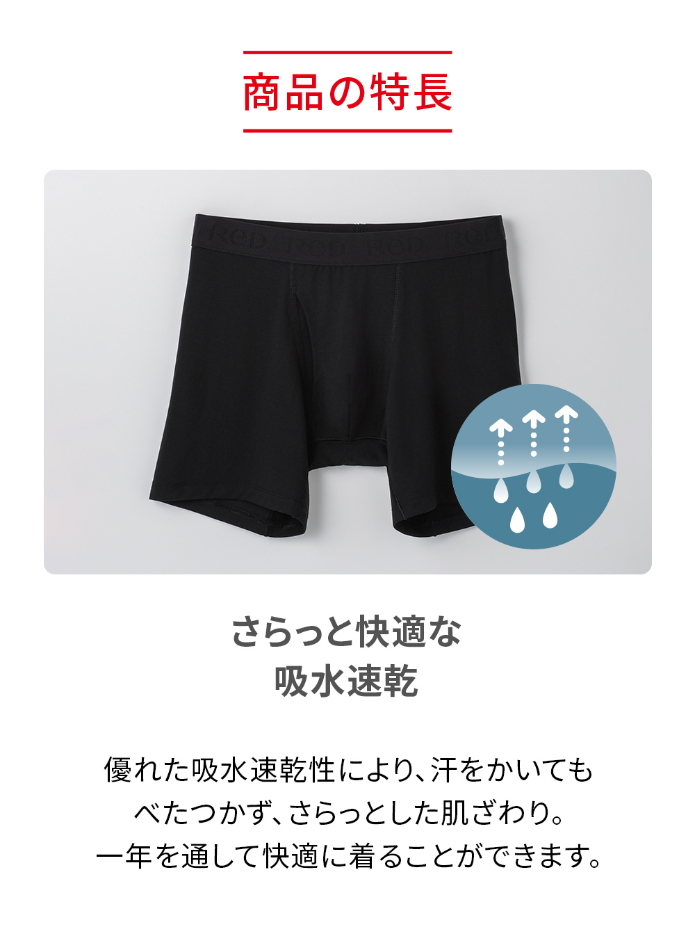 優れた吸水速乾性により、汗をかいてもべたつかず、さらっとした肌ざわり。一年を通して快適に着ることができます。