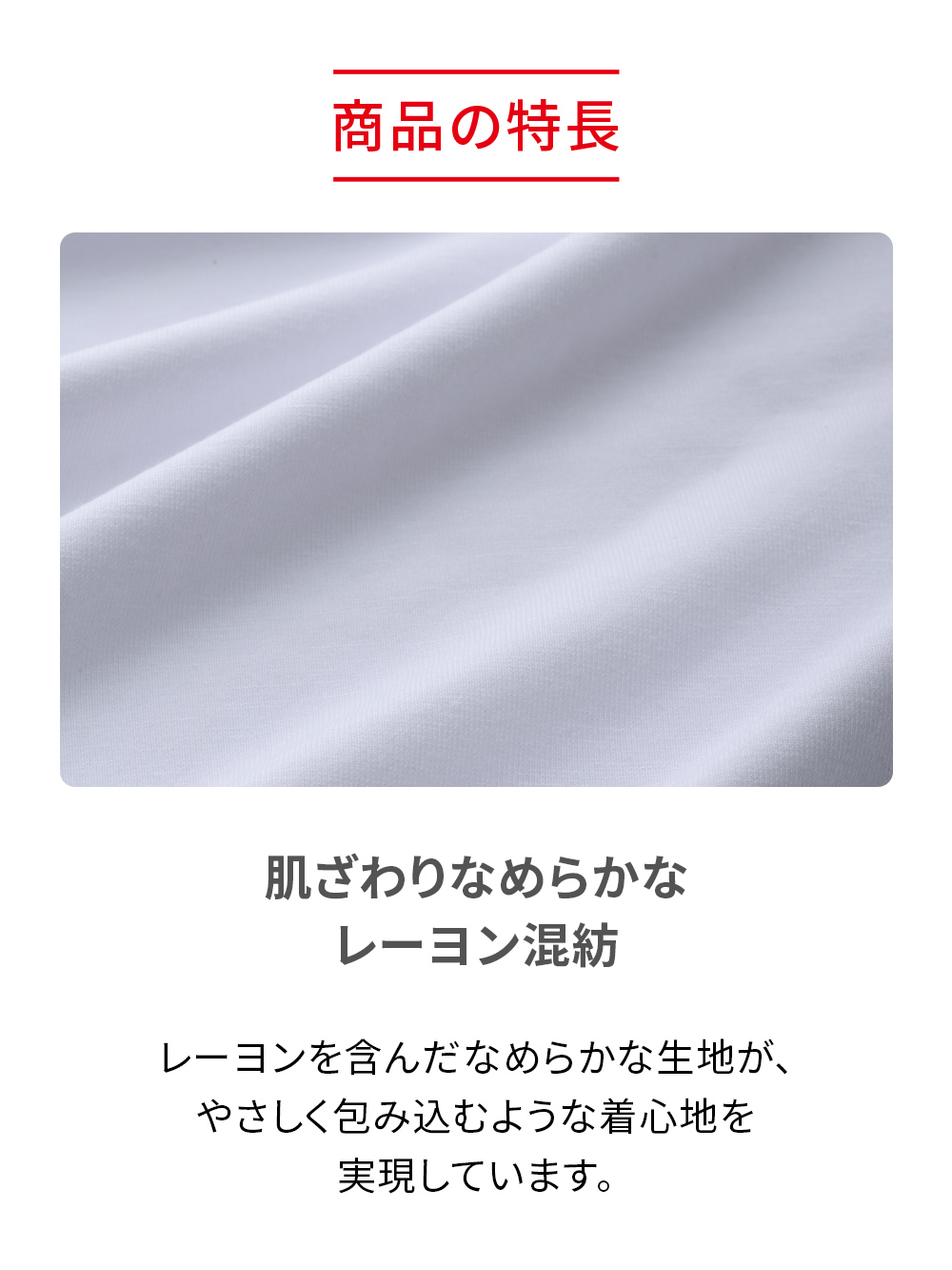 レーヨンを含んだなめらかな生地が、やさしく包み込むような着心地を実現しています。