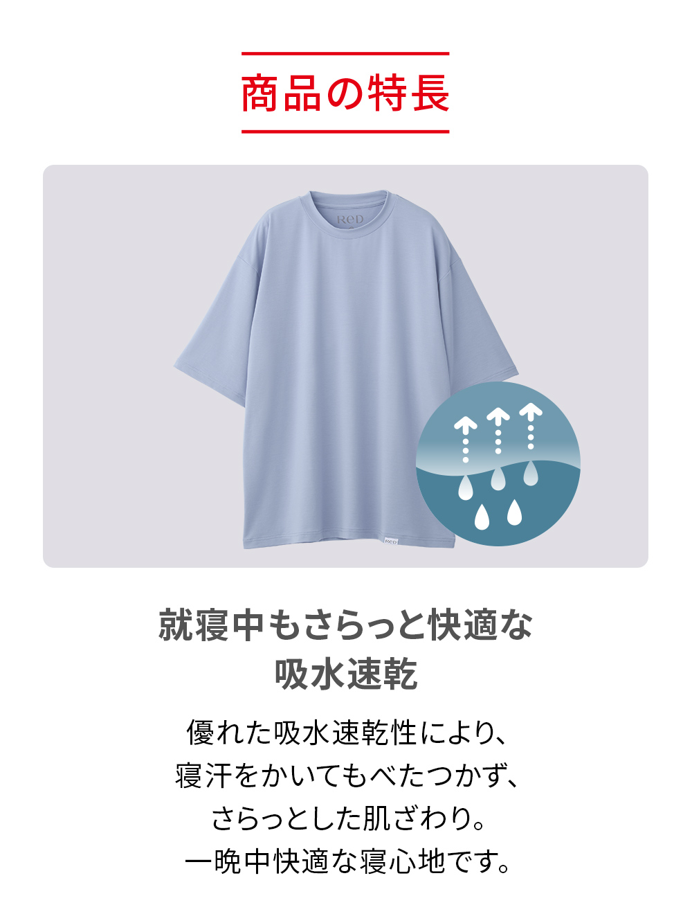 就寝中もさらっと快適な吸水速乾