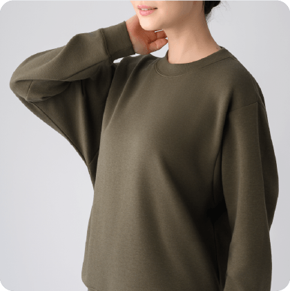 伸縮性もやわらかさも抜群。腕を上げたり、ひねったり、身体の動きに寄り添う軽やかな着心地です。