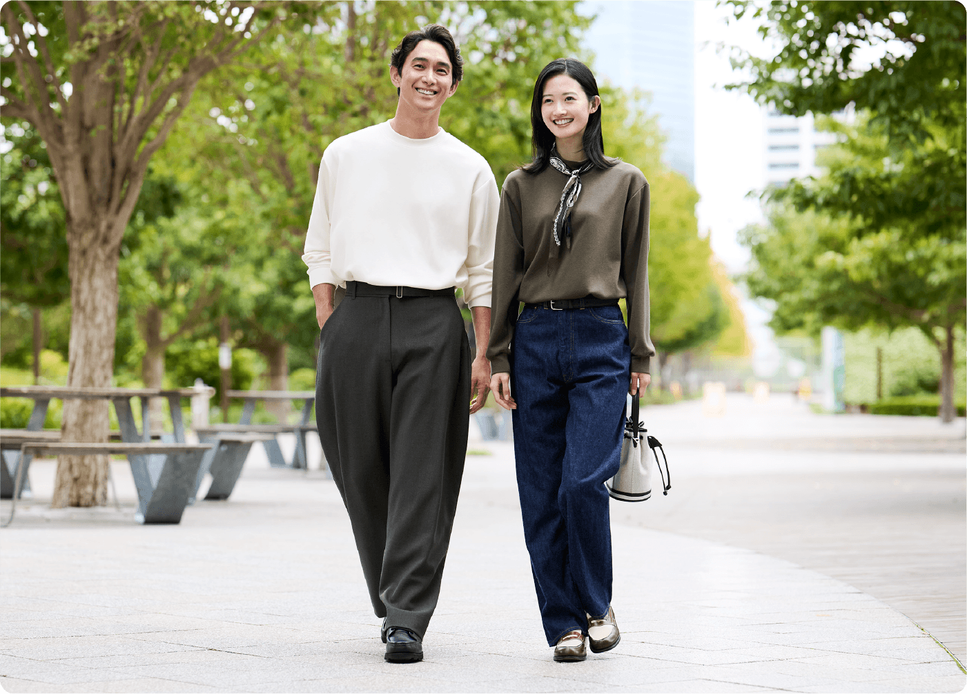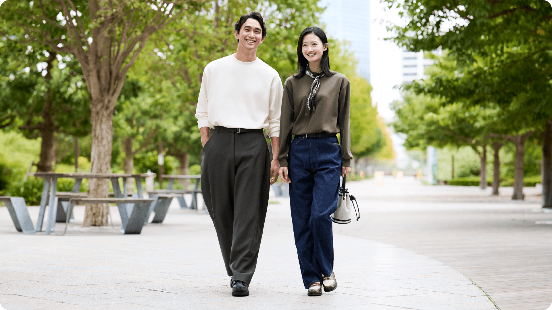 男女兼用で着られるシンプルなデザインのカジュアルウェア。