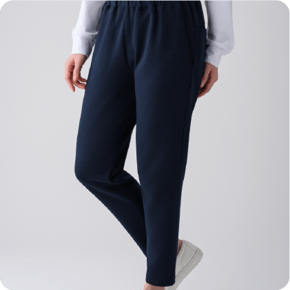 伸縮性もやわらかさも抜群。脚を曲げたり、伸ばしたり、身体の動きに寄り添う軽やかな着心地です。