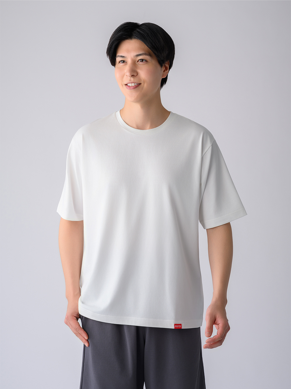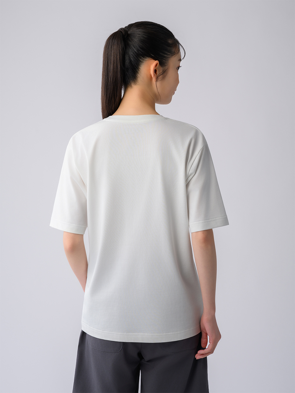 軽くて動きやすいから、室内・屋外だけでなく、あらゆるシーンで活躍。ラフなスタイルでもオフィスカジュアルでも着られる、男女兼用のTシャツです。