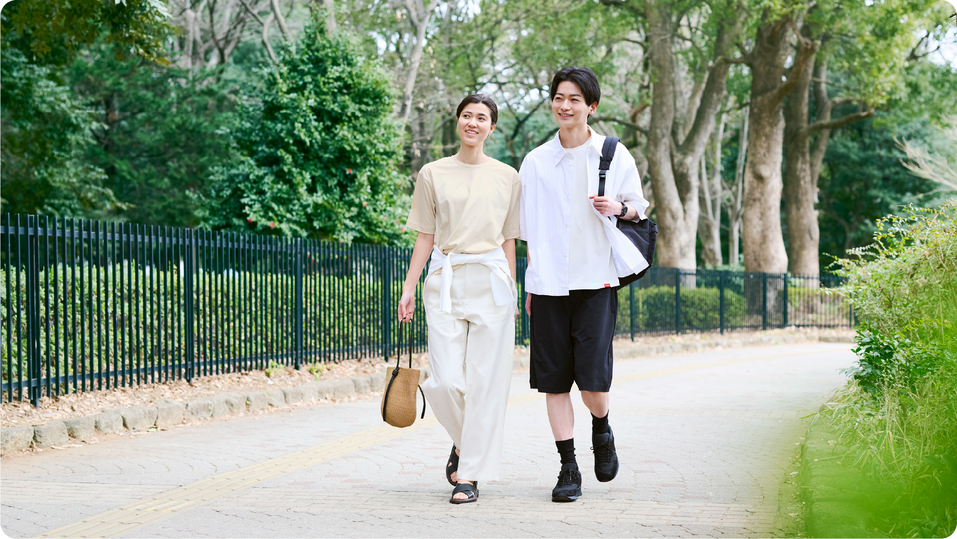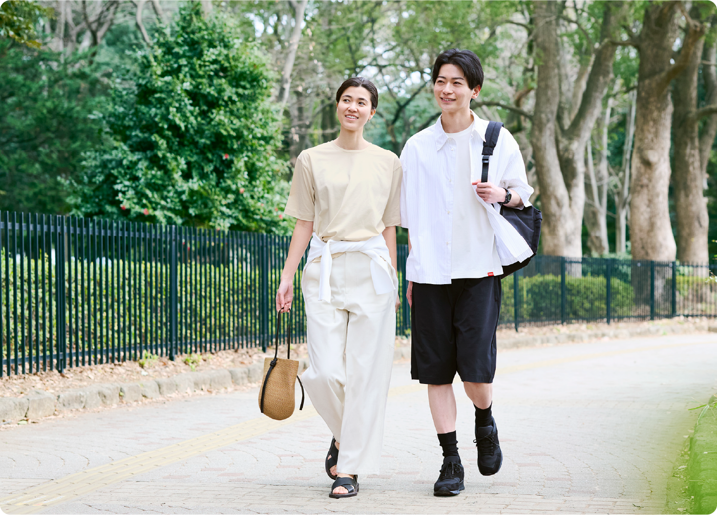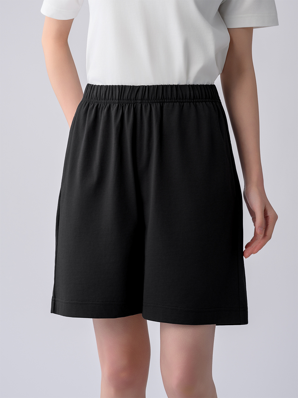 一方、「コットン ハーフパンツ」は適度なハリ感があり、体のラインを拾いすぎないきれいなシルエットのため、外出時にもご使用いただけます。
