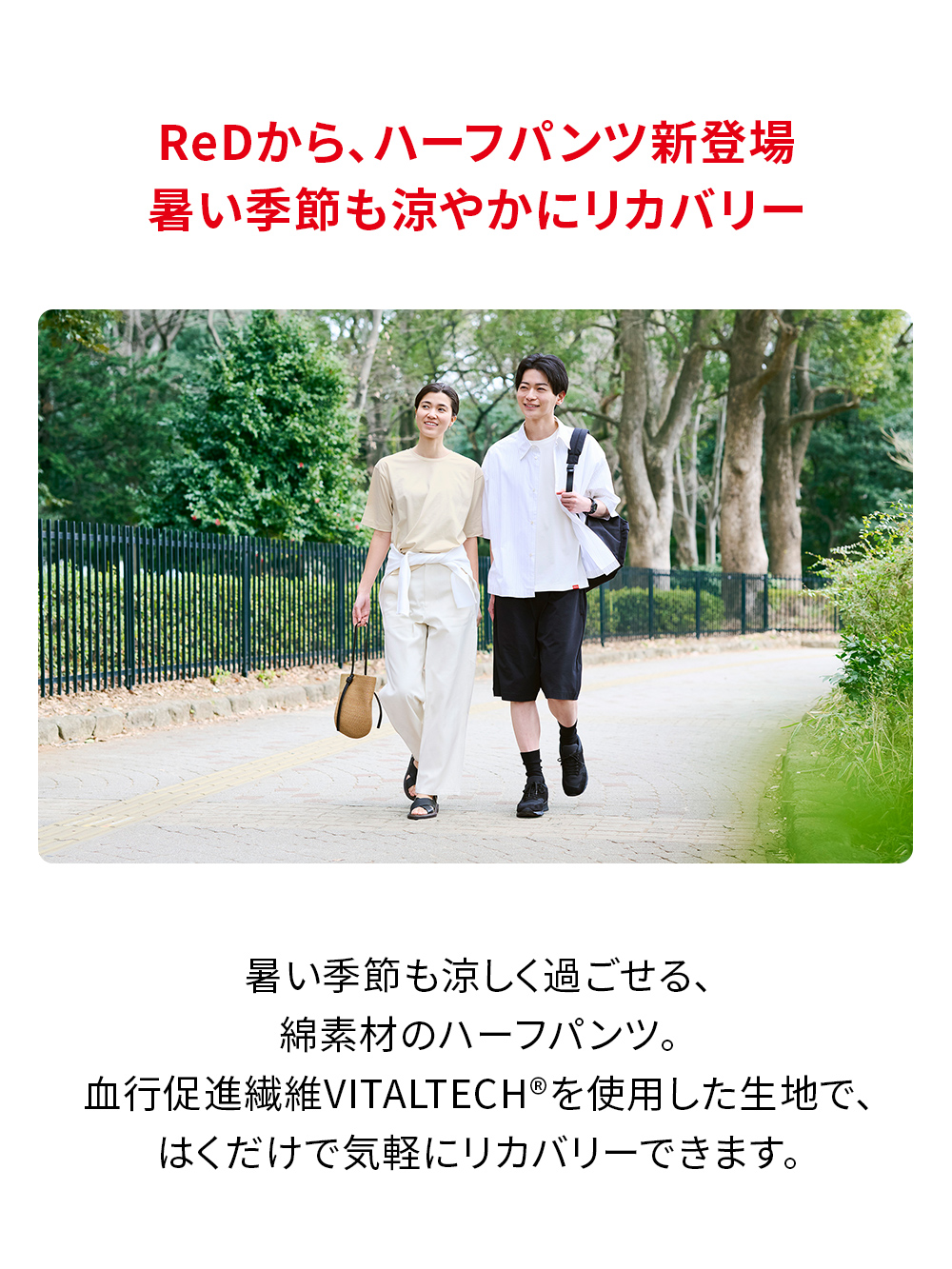 着るだけで遠赤外線の血行促進作用により、疲労回復や筋肉のハリ・コリの緩和などの効果が期待できる、リカバリーウェアのハーフパンツです。