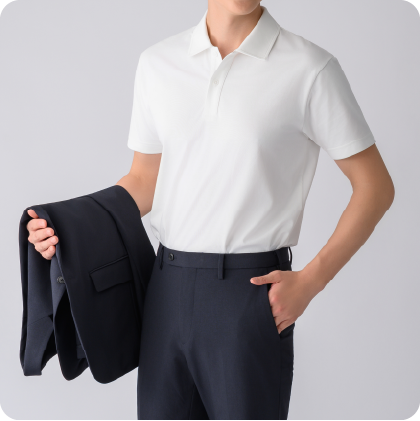 身体のラインが出すぎないデザインと、スタンダードな3色展開。ビジネスシーンにもカジュアルな着こなしにもマッチする、使いやすいポロシャツです。