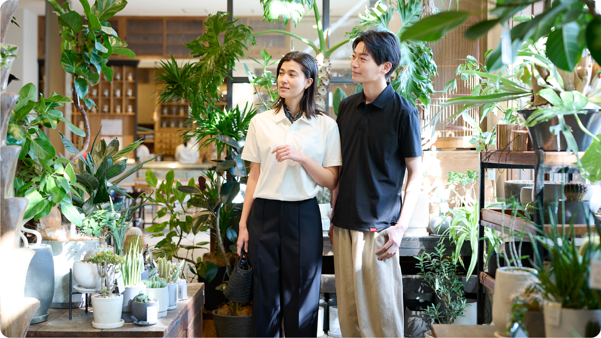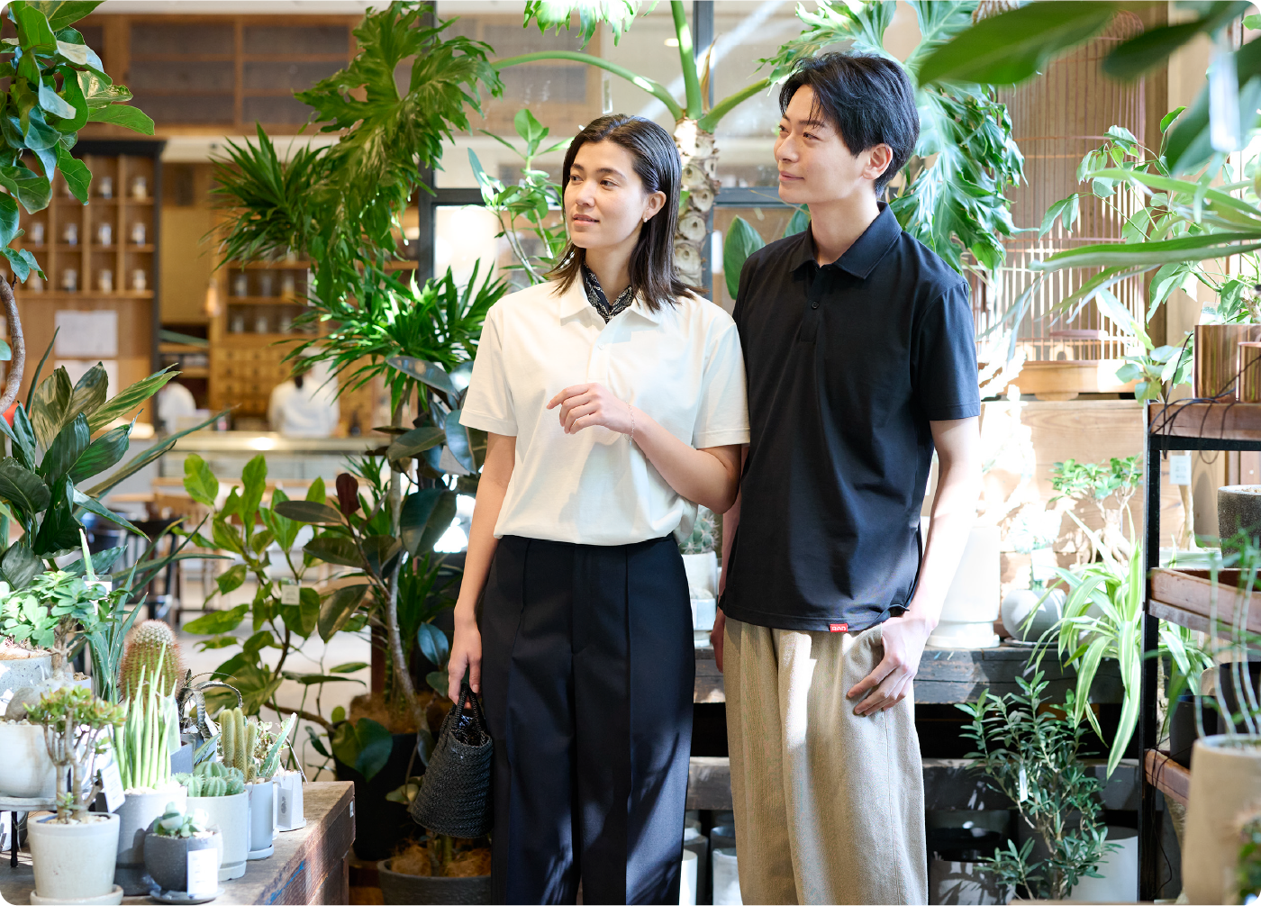 コットン高混率(60%以上)で吸水透湿性に優れ、暑い夏でも快適に着て頂ける素材です。