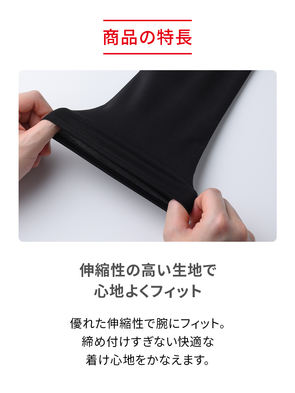 優れた伸縮性で腕にフィット。締め付けすぎない快適な着け心地をかなえます。