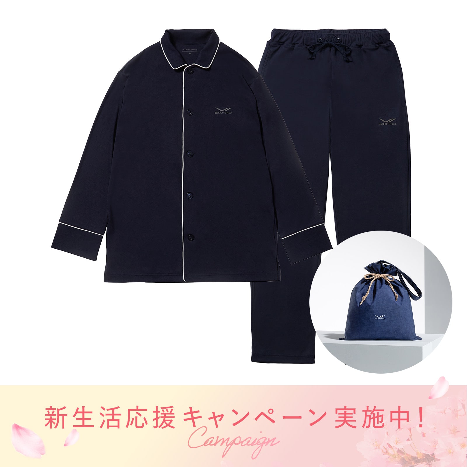 1日の終わりに、リラックスした状態で眠りへと導くシンプルなデザインのパジャマタイプ。眠る前のひとときも心地よく過ごせる、落ち着いたネイビーとライトベージュの2色展開。