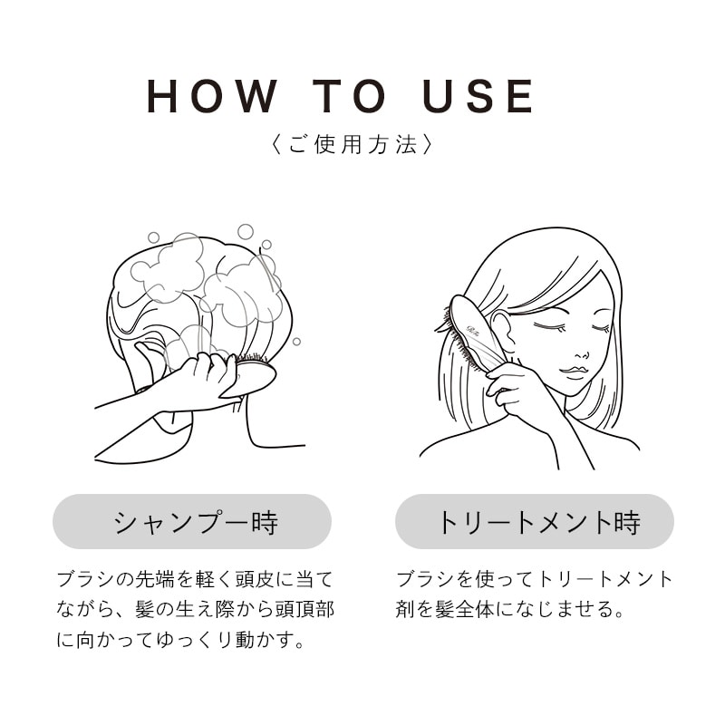 シャンプー中にブラッシングするだけで、指だけでは届かない髪の隙間にまで濃密タッチ毛がはいり込み、頭皮をいたわりながら、毛穴汚れを落として、髪1本1本までしっかりと洗い上げます。