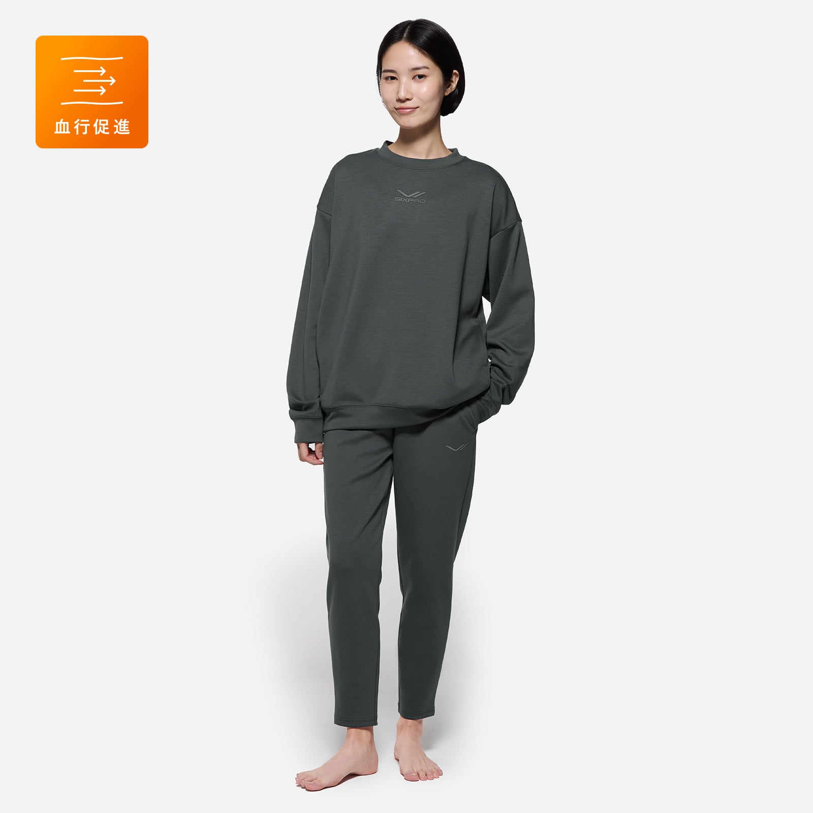 SIXPAD Recovery Wearシリーズは、体温を保ってくれるのでとても重宝しています。就寝中や部屋で過ごす時間、移動時間にも着用し、多い日は12時間着ていることもあります。