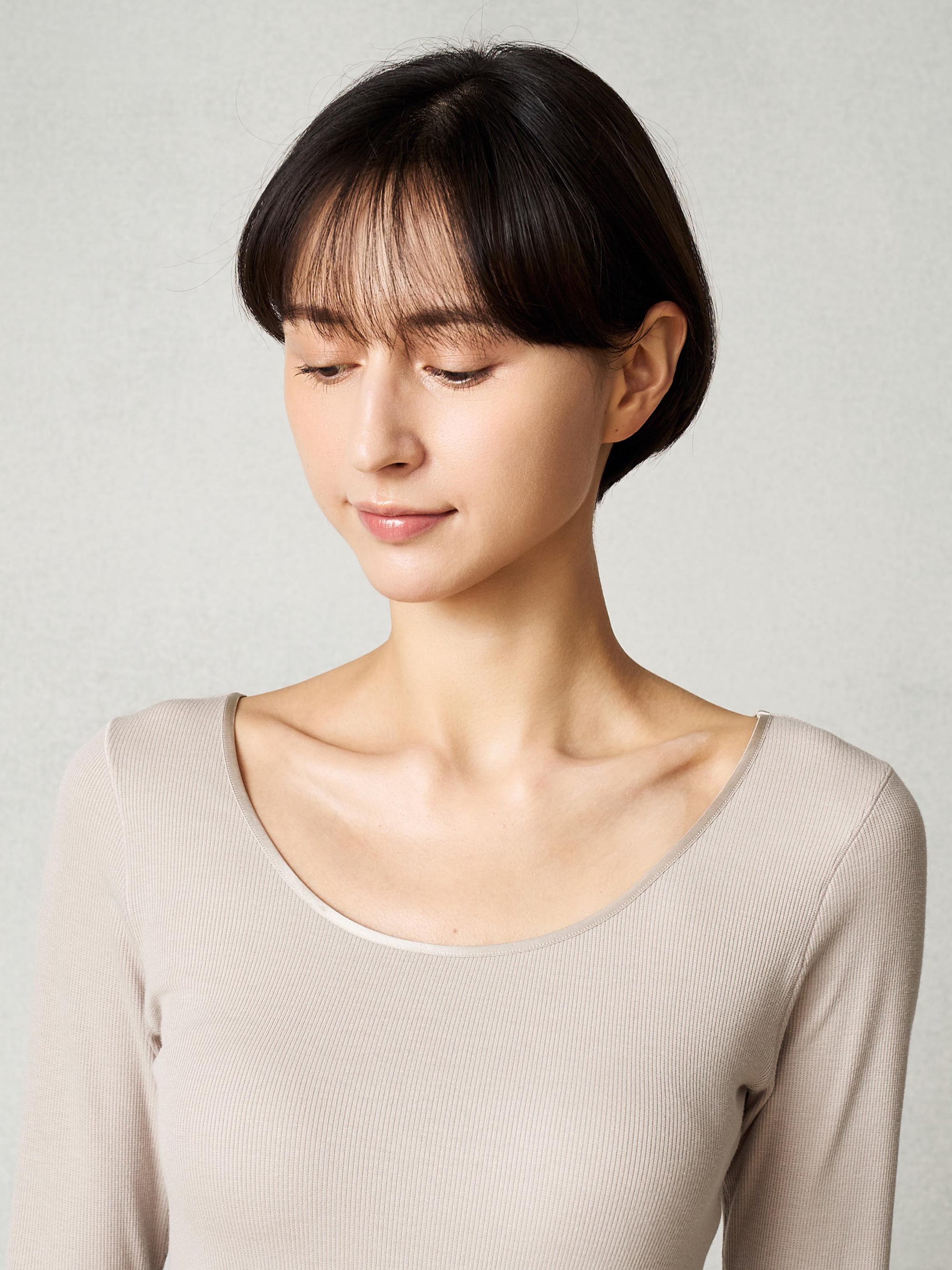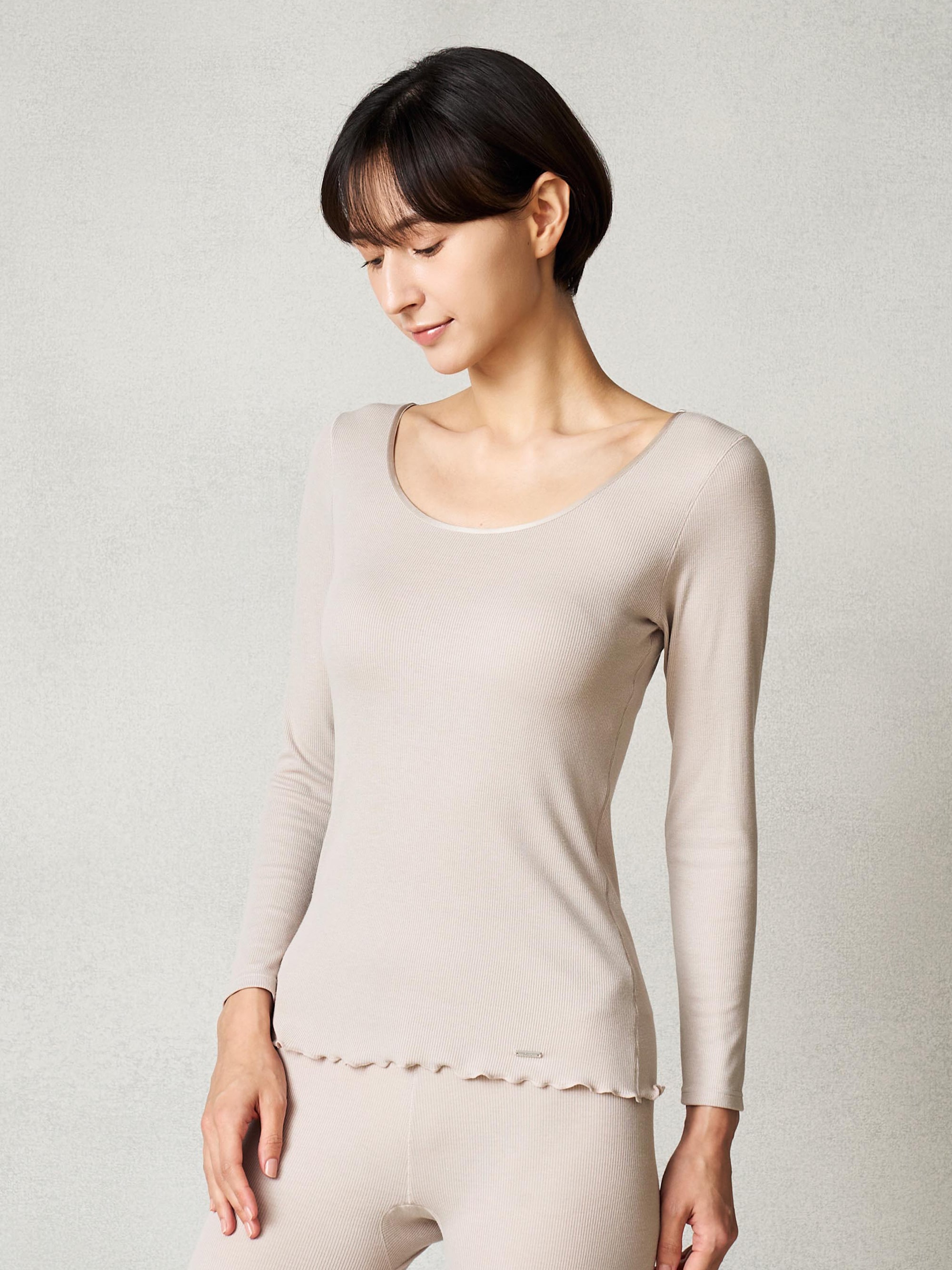 リブ素材で伸縮性が高いため、ふんわり柔らかく