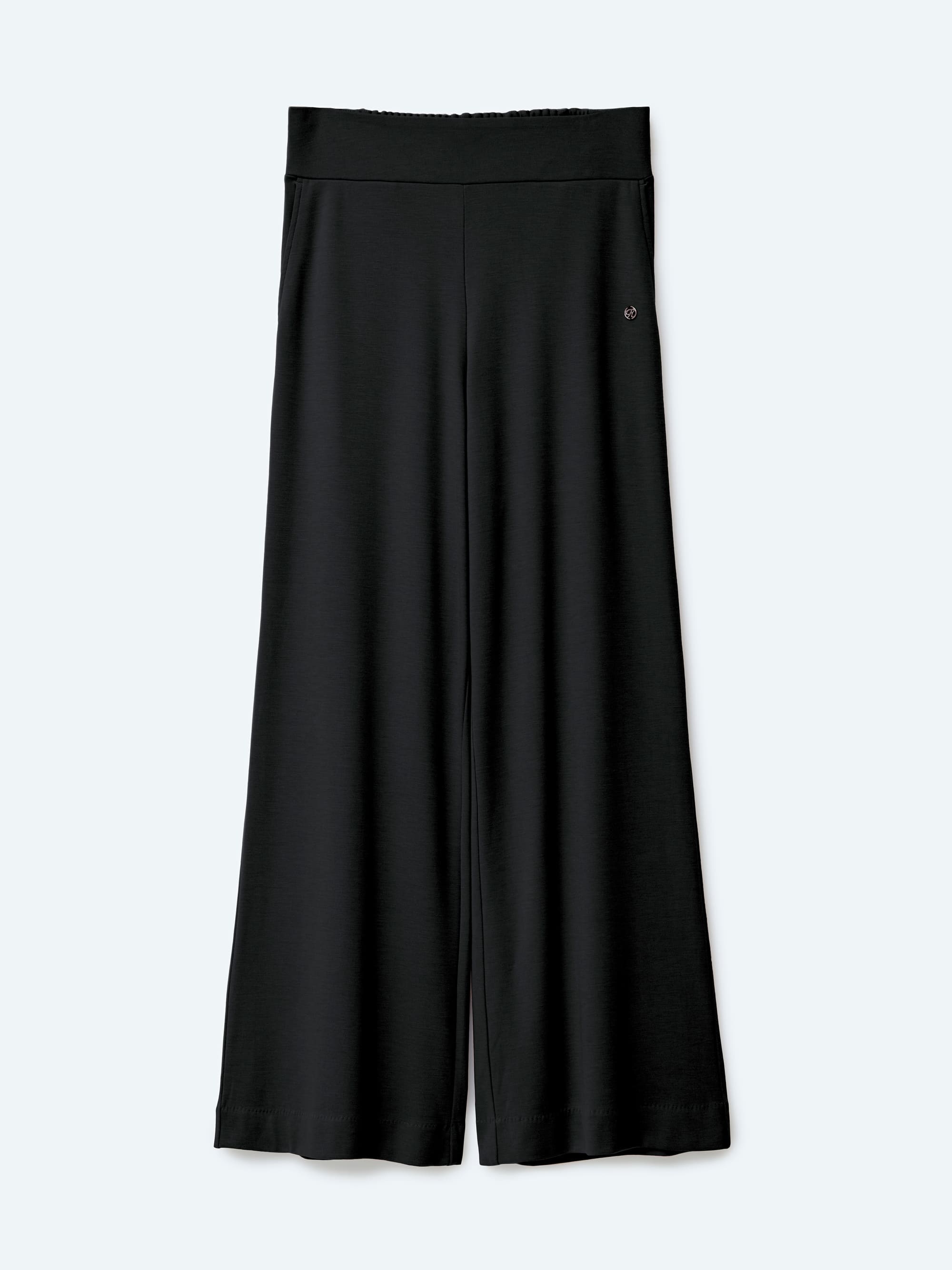 気になるお尻や太ももの周りがゆとりのあるシルエットで、スタイルアップも叶える。
