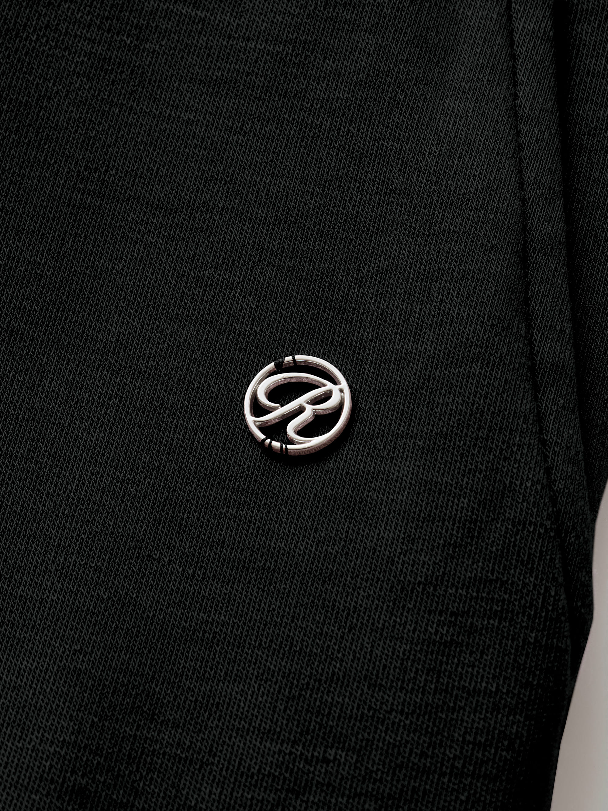 ポケット部分にRのロゴマーク。濃いブラック、深いネイビー、癒しのモーブピンクにも映えるポイント。