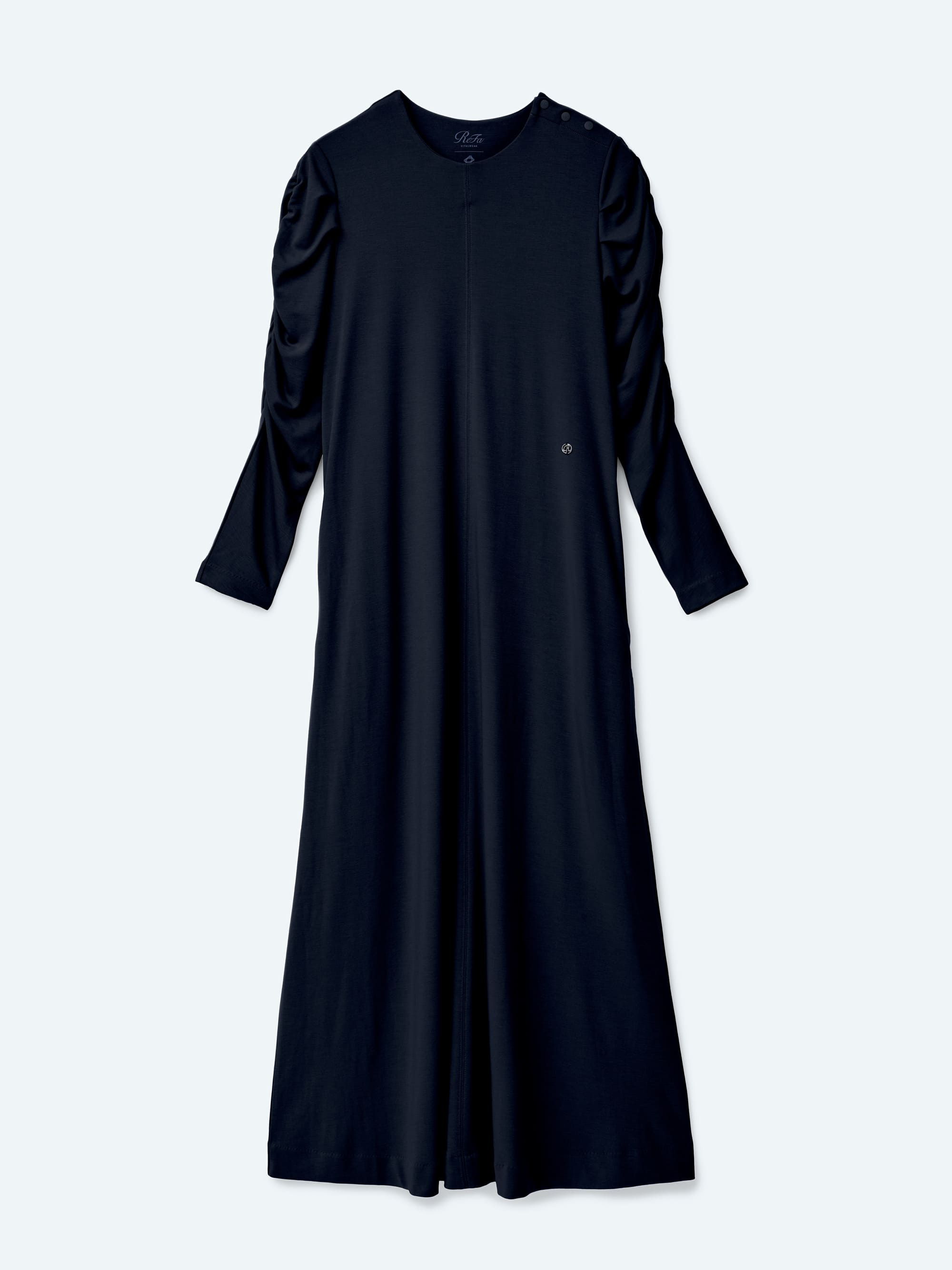 二の腕にギャザーを施し、布量を多くして血行促進。脂肪が多く冷えやすい二の腕にアプローチ。