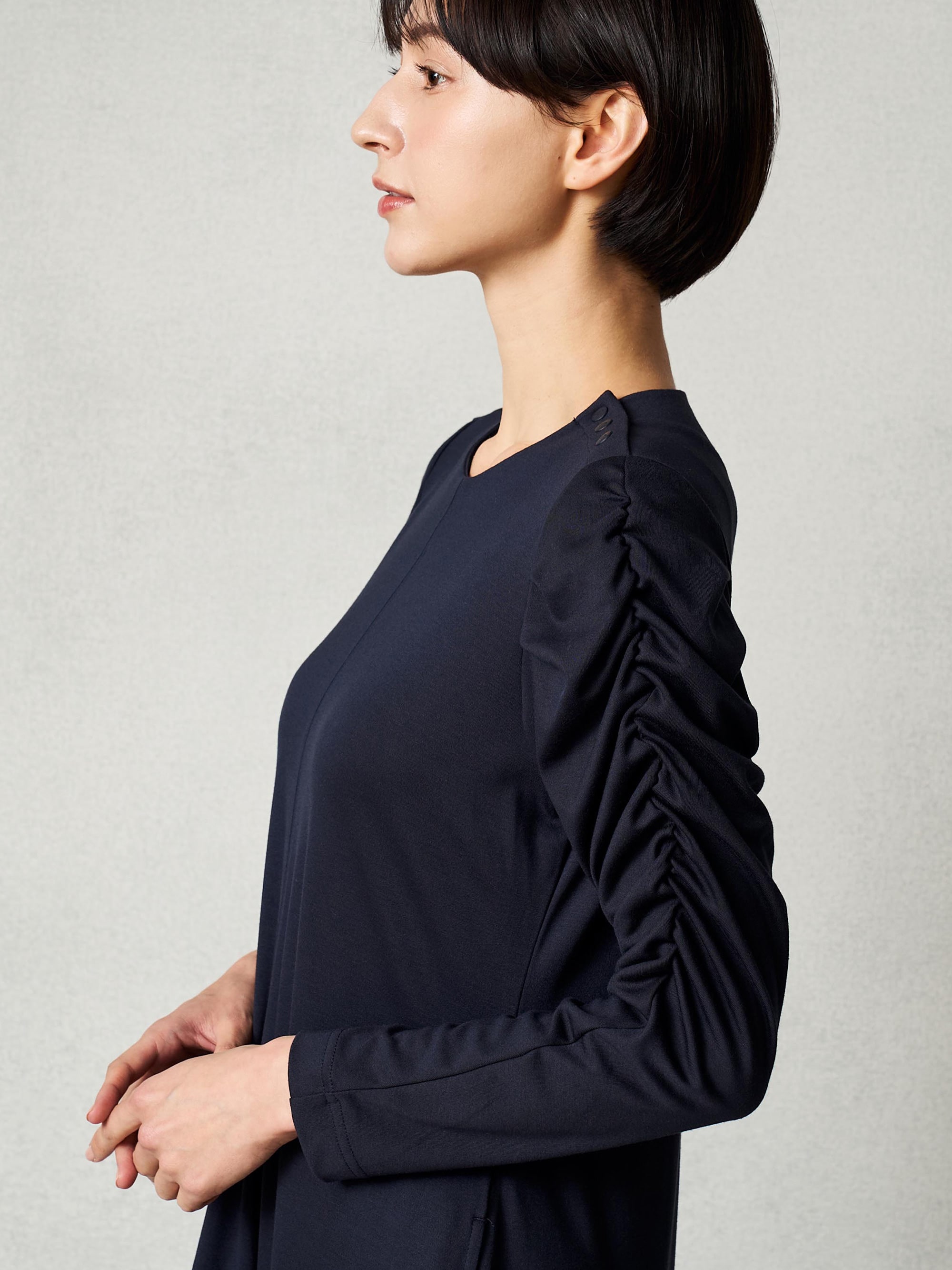 モイストスムース ギャザースリーブマキシレングスシャツ