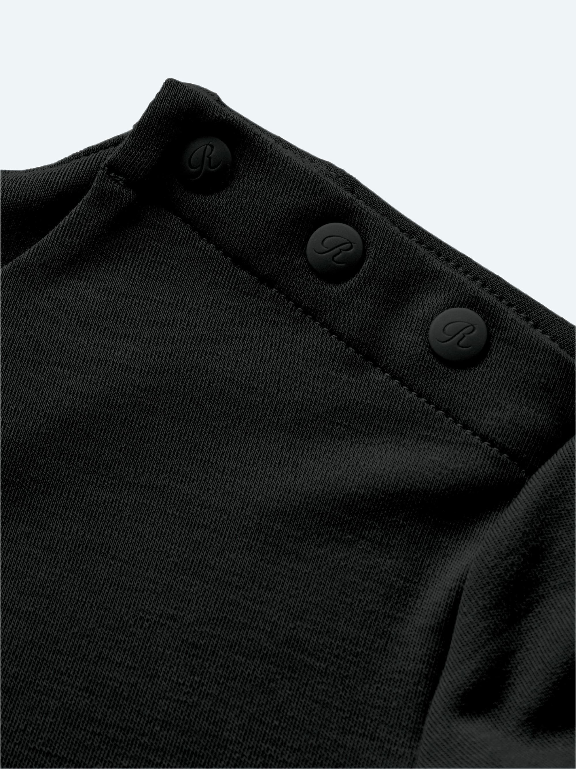 肩にあるスナップボタンにもRのロゴマークを入れて、細部にもこだわりを。