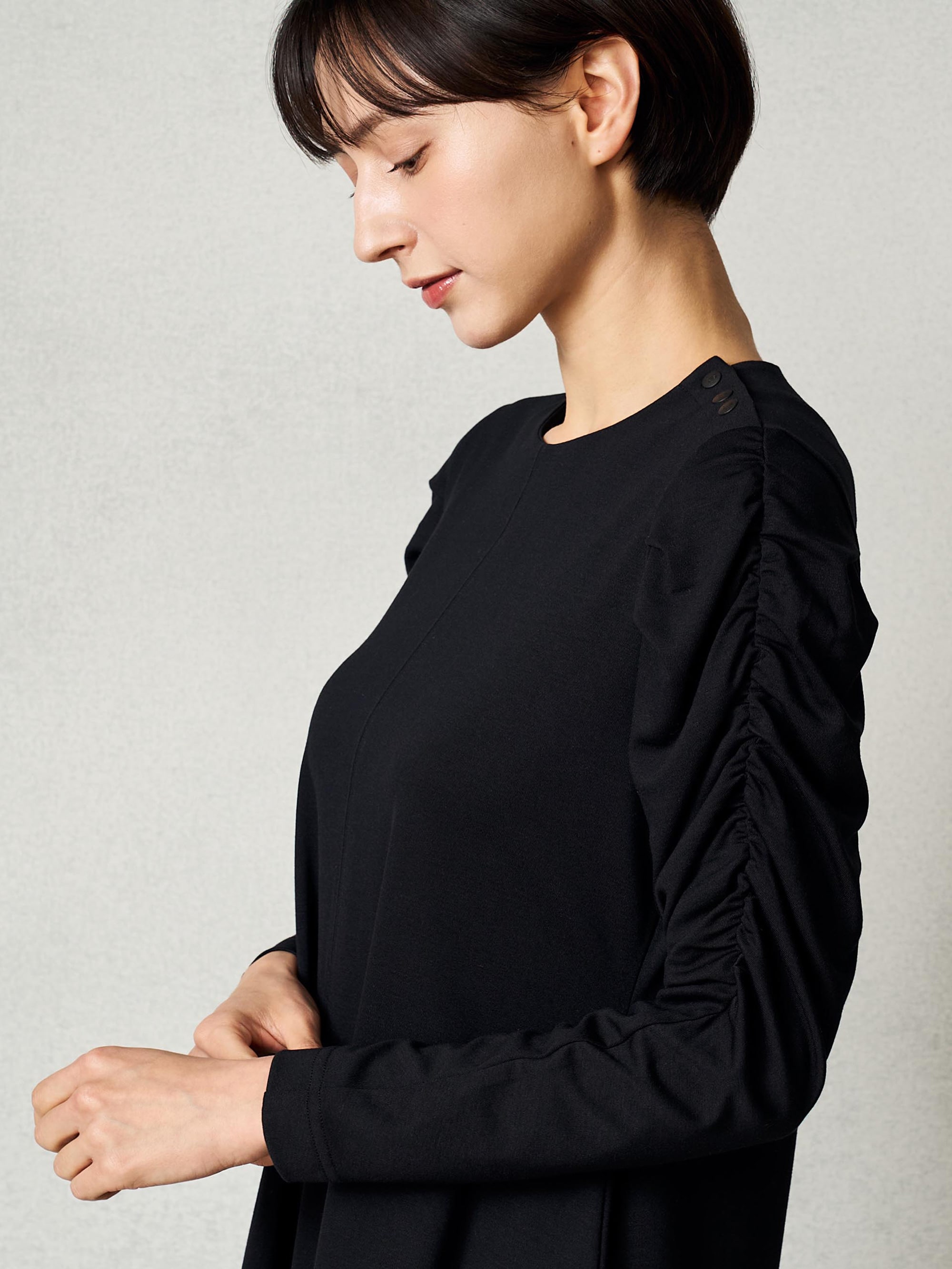 ゆったりめのシルエットで自宅で快適に過ごすルームウェアでありながら、お出かけ時にも着用できるデザイン。