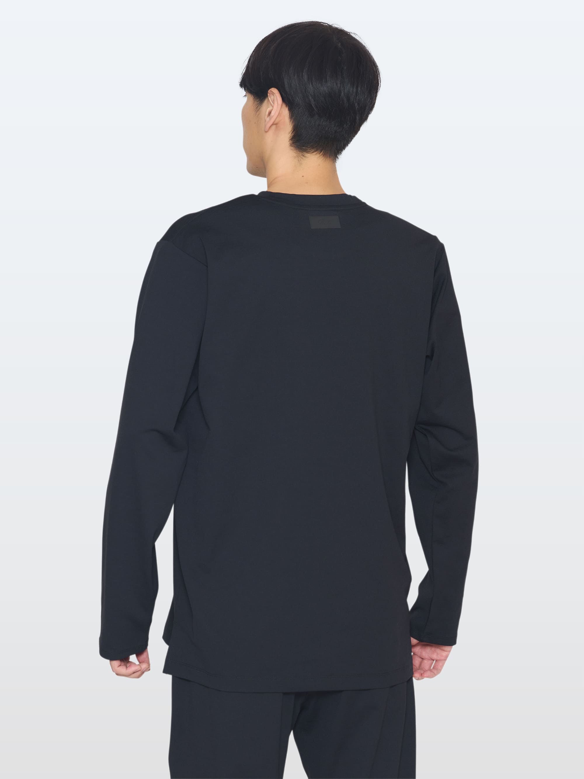 背面にブランドタグを配置。内側に縫い目が無いため、着ていても気にならない。