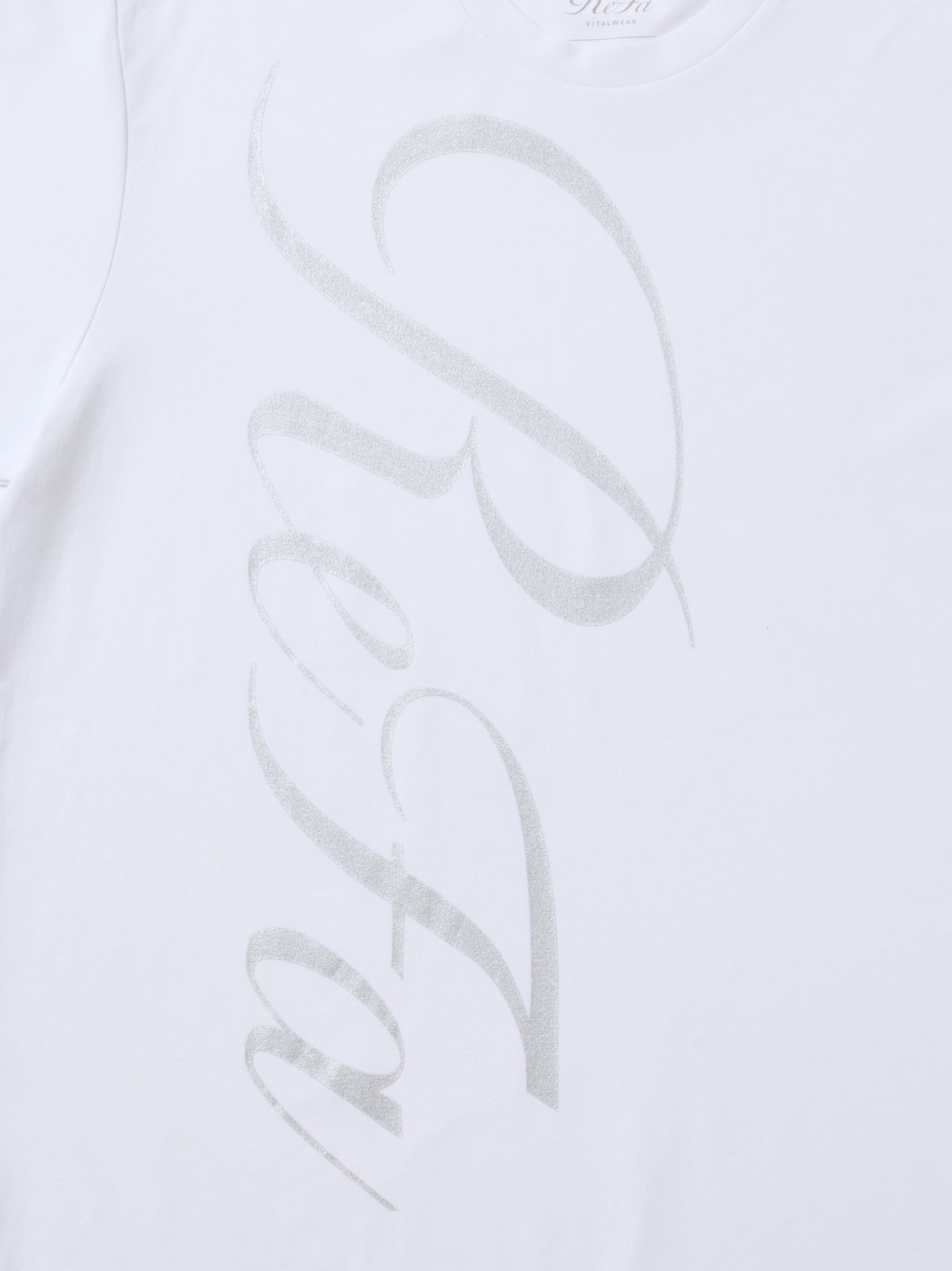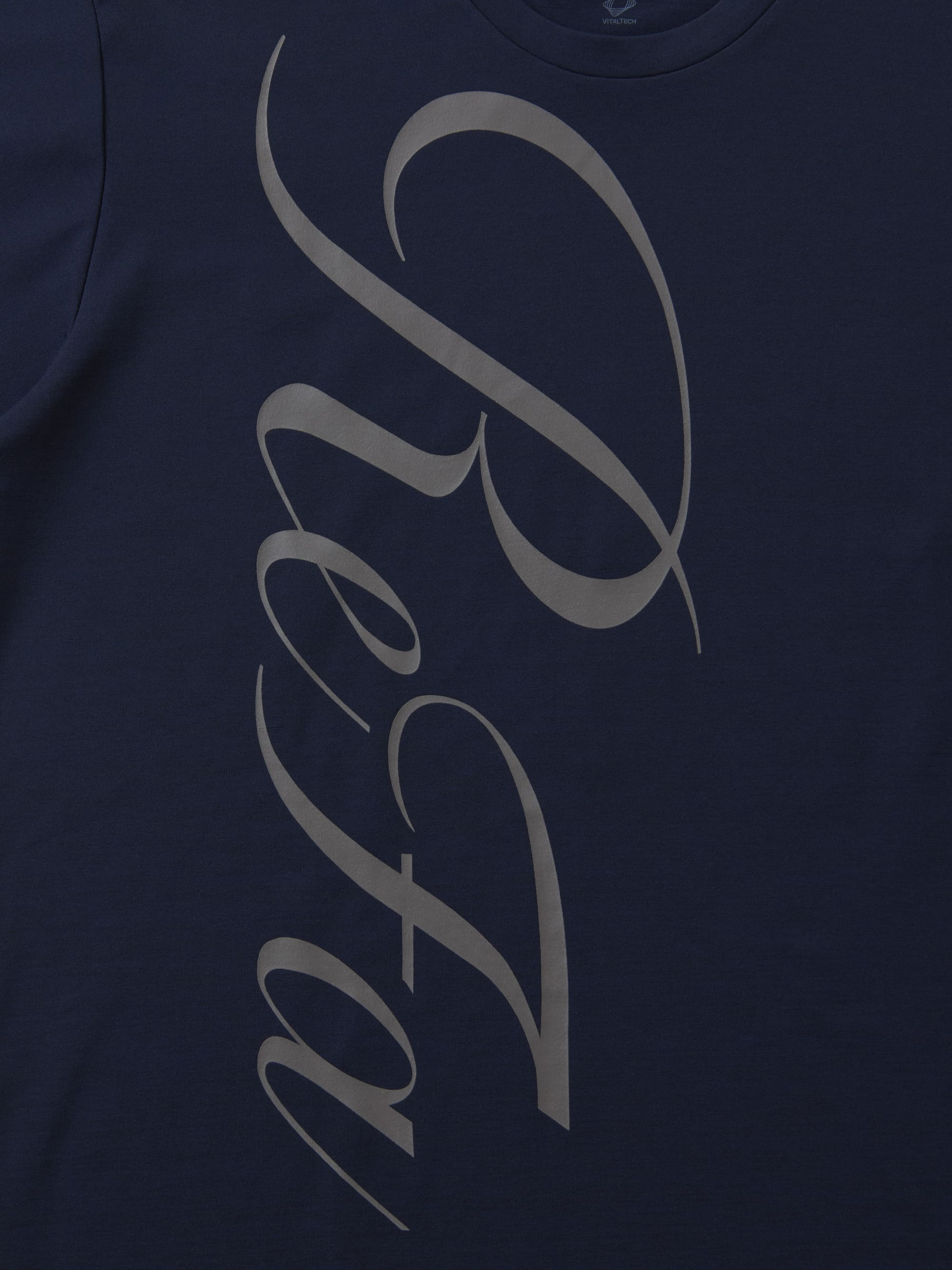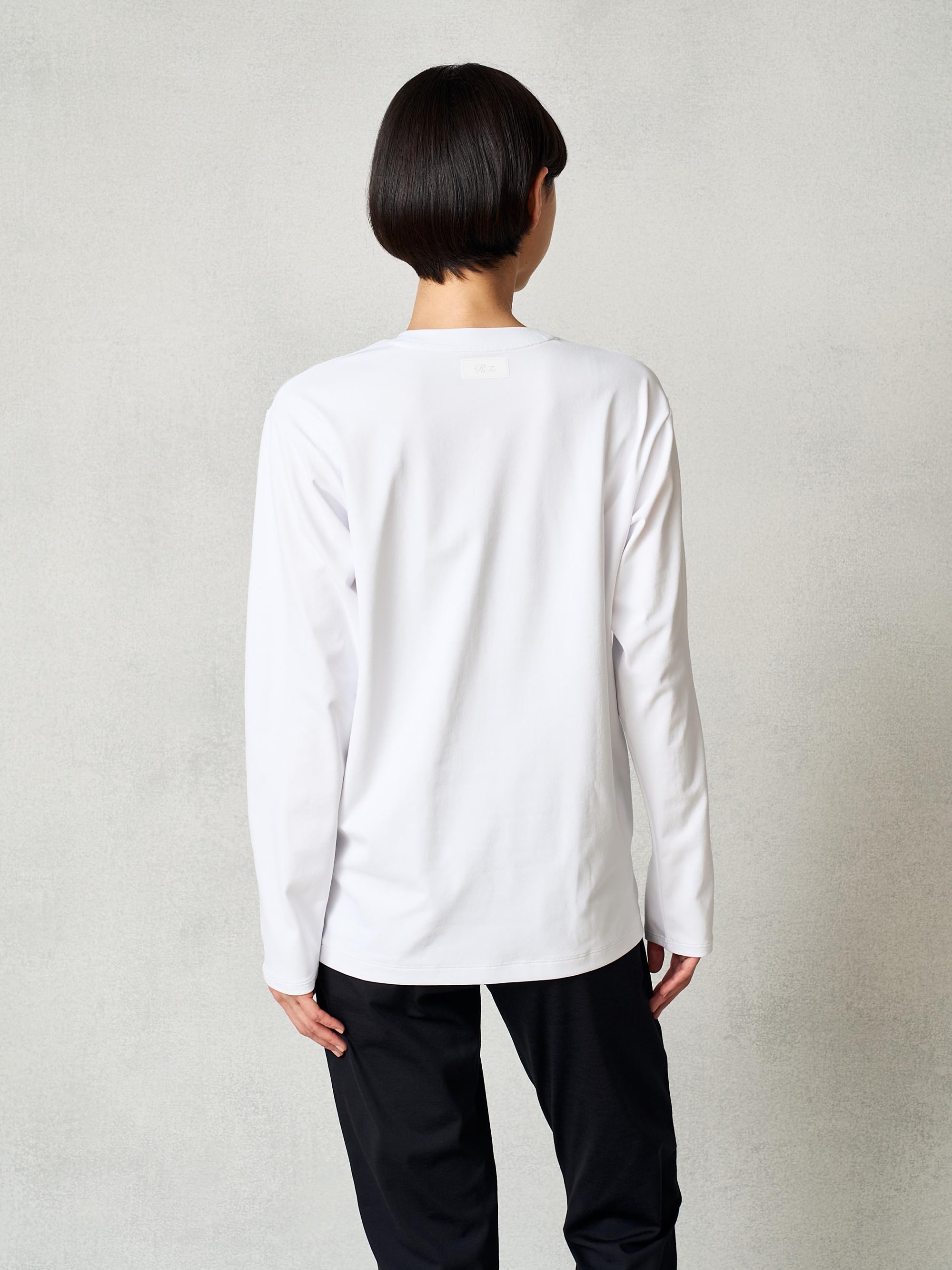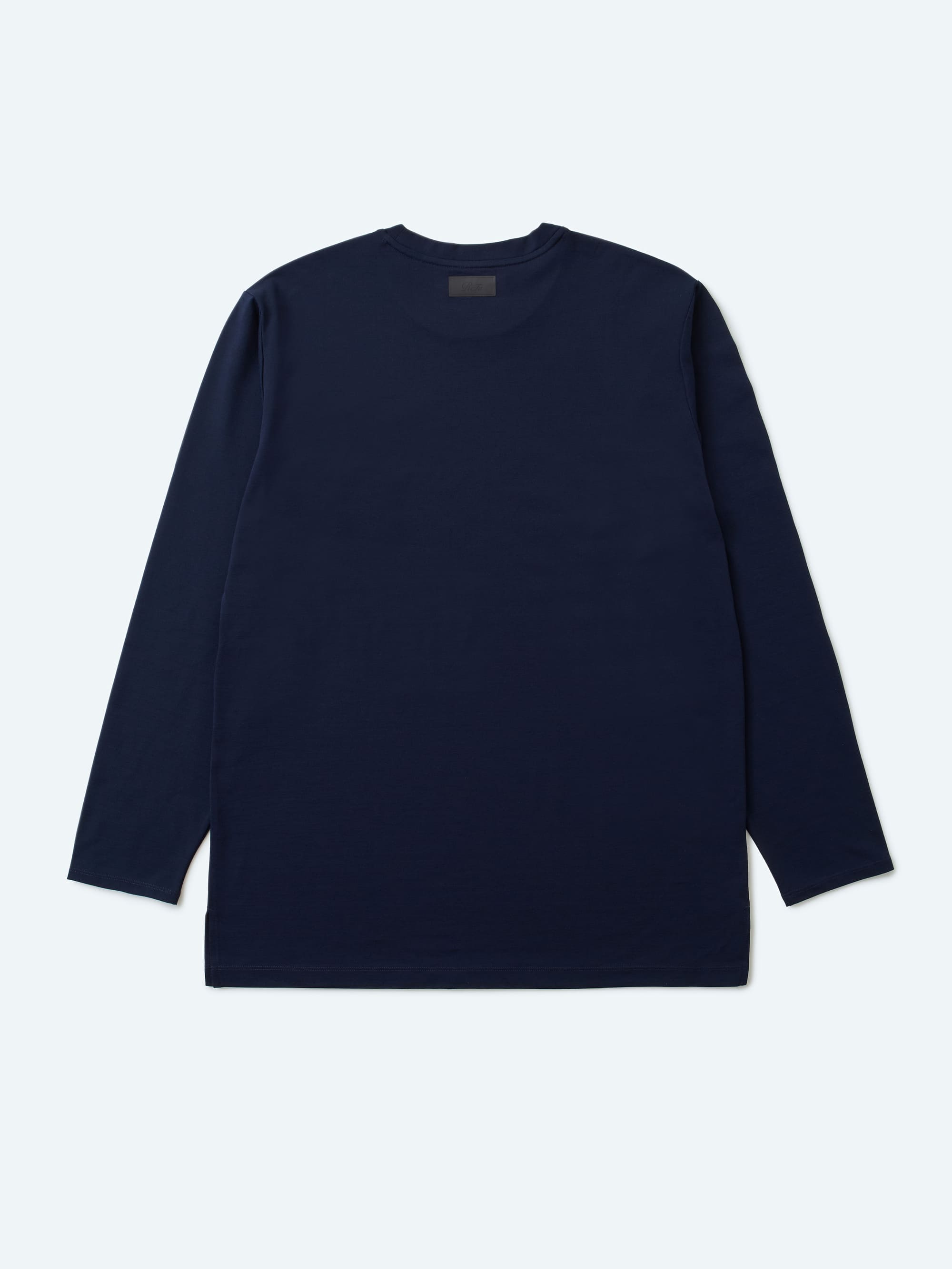背面にブランドタグを配置。内側に縫い目が無いため、着ていても気にならない。