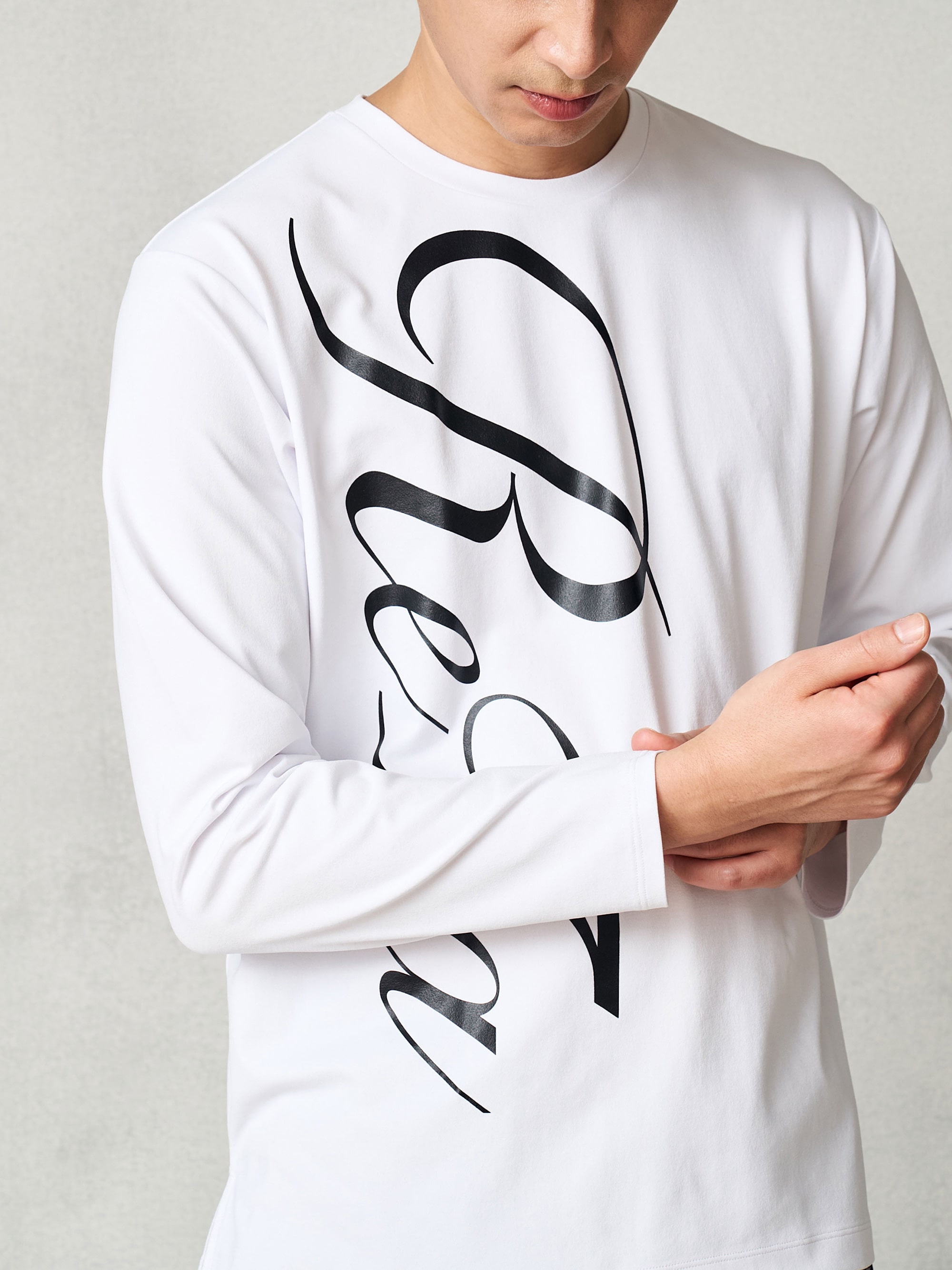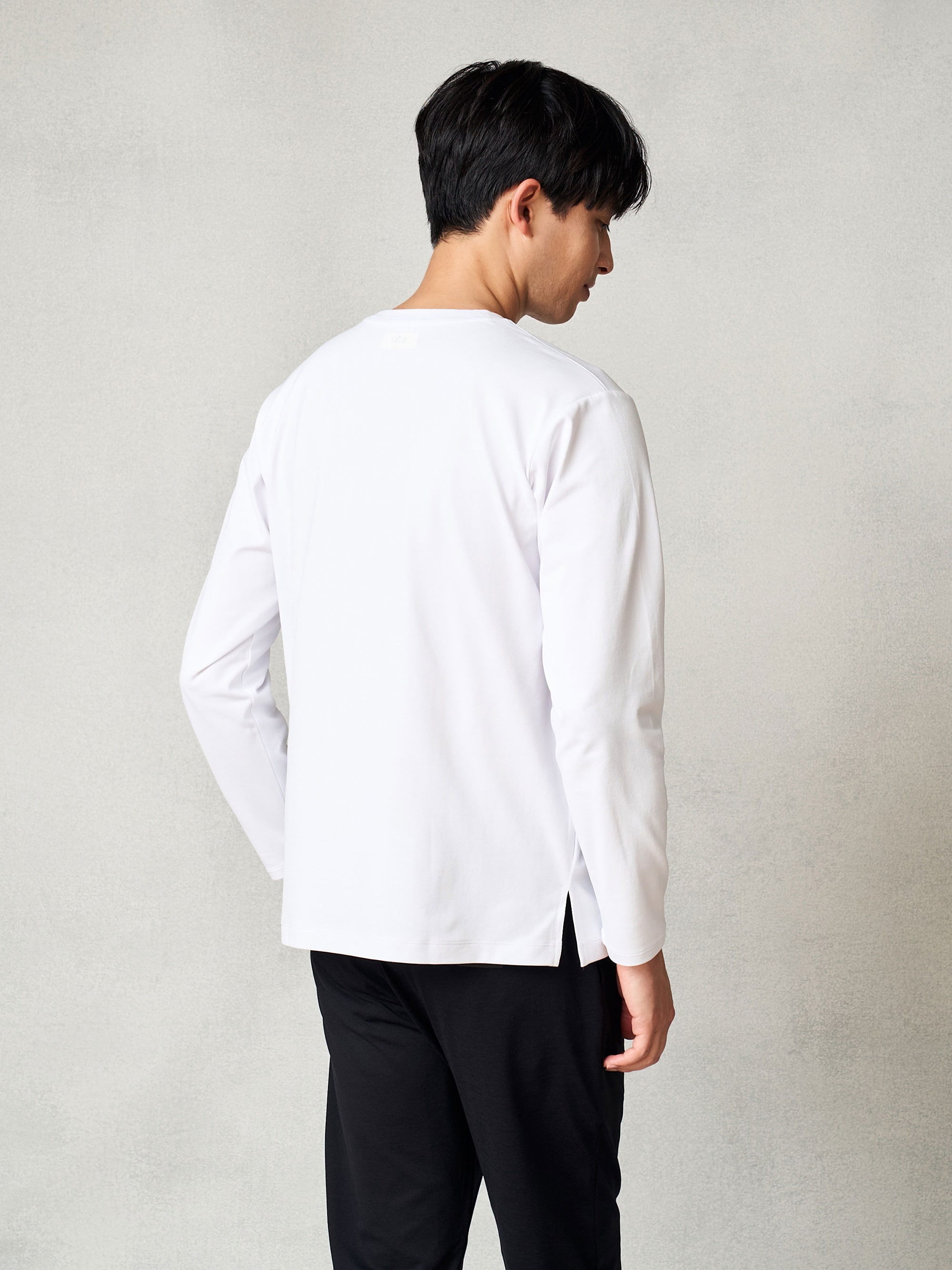 背面にブランドタグを配置。内側に縫い目が無いため、着ていても気にならない。