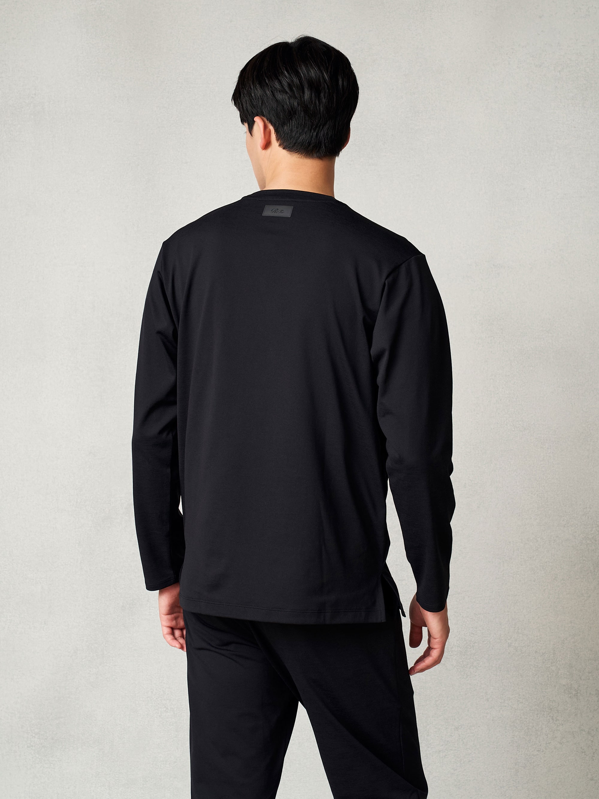 背面にブランドタグを配置。内側に縫い目が無いため、着ていても気にならない。