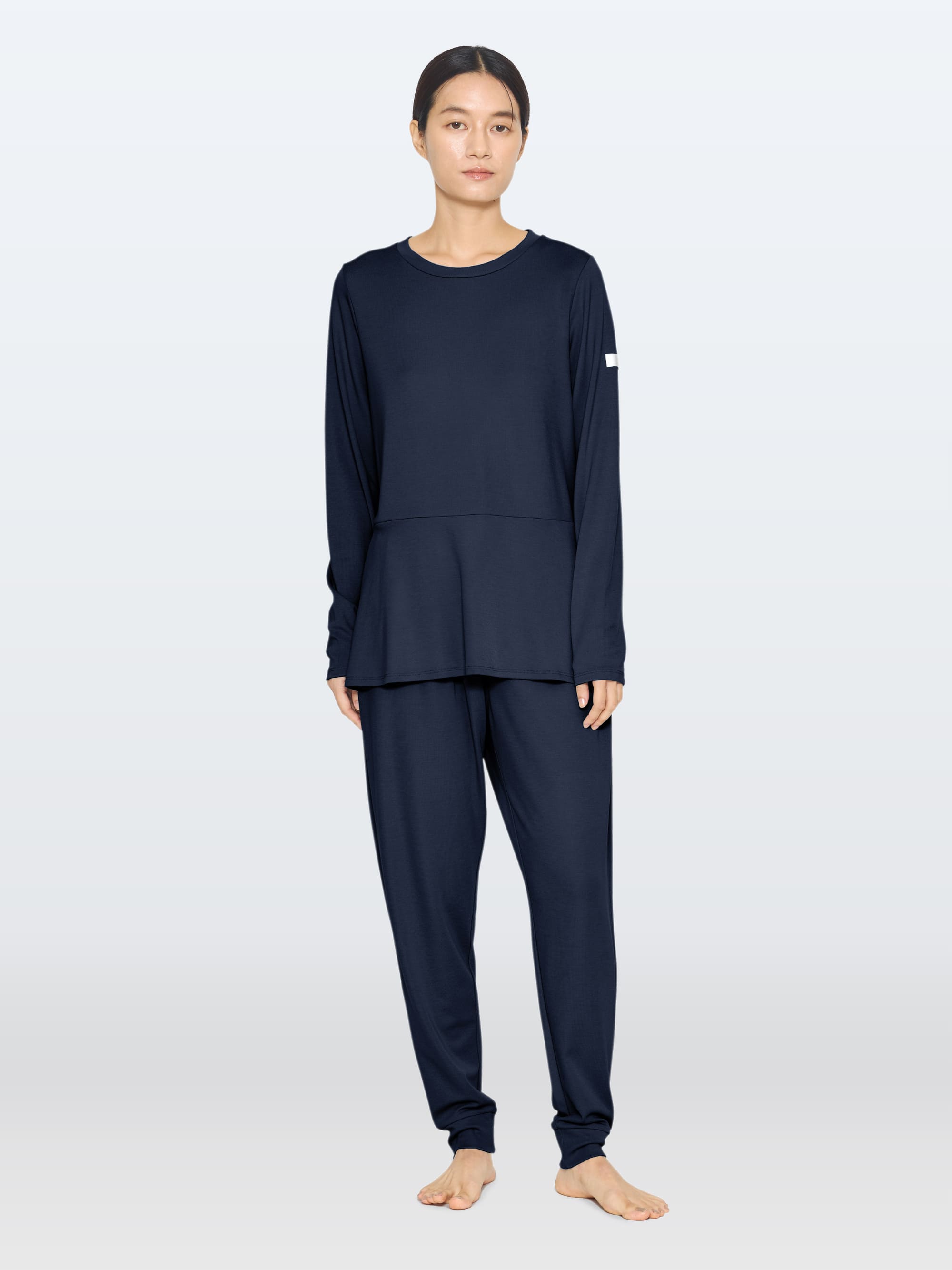 ゆとりのあるシルエットと肌触りの良い生地で部屋で過ごす時間を快適に。プルオーバー(別売)と合わせて美しいシルエットに。