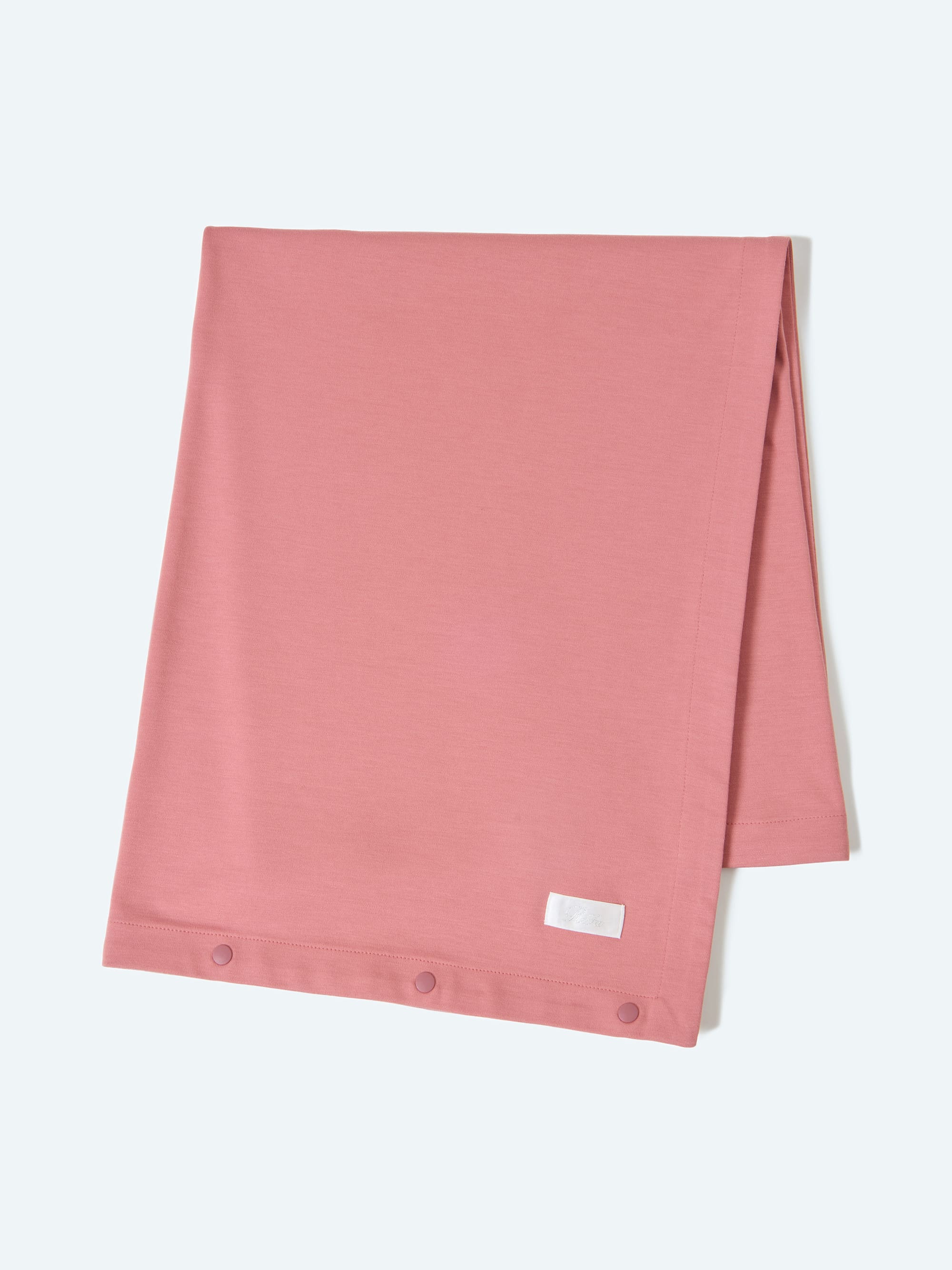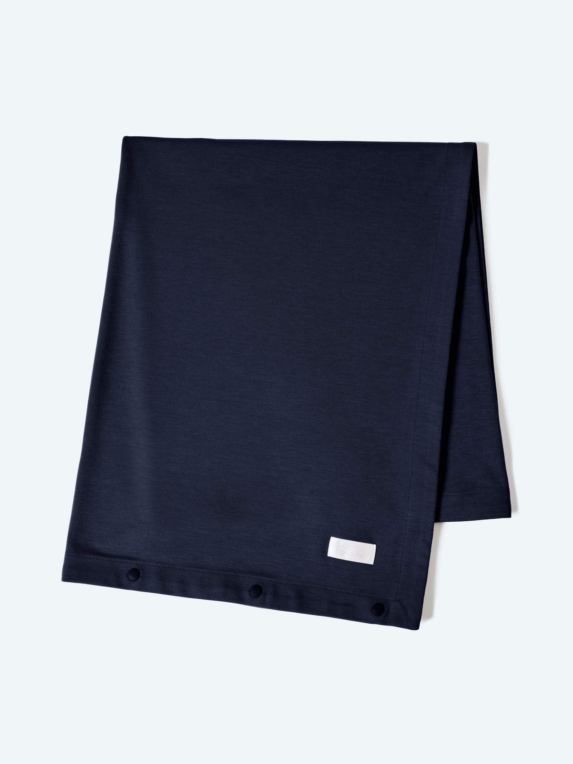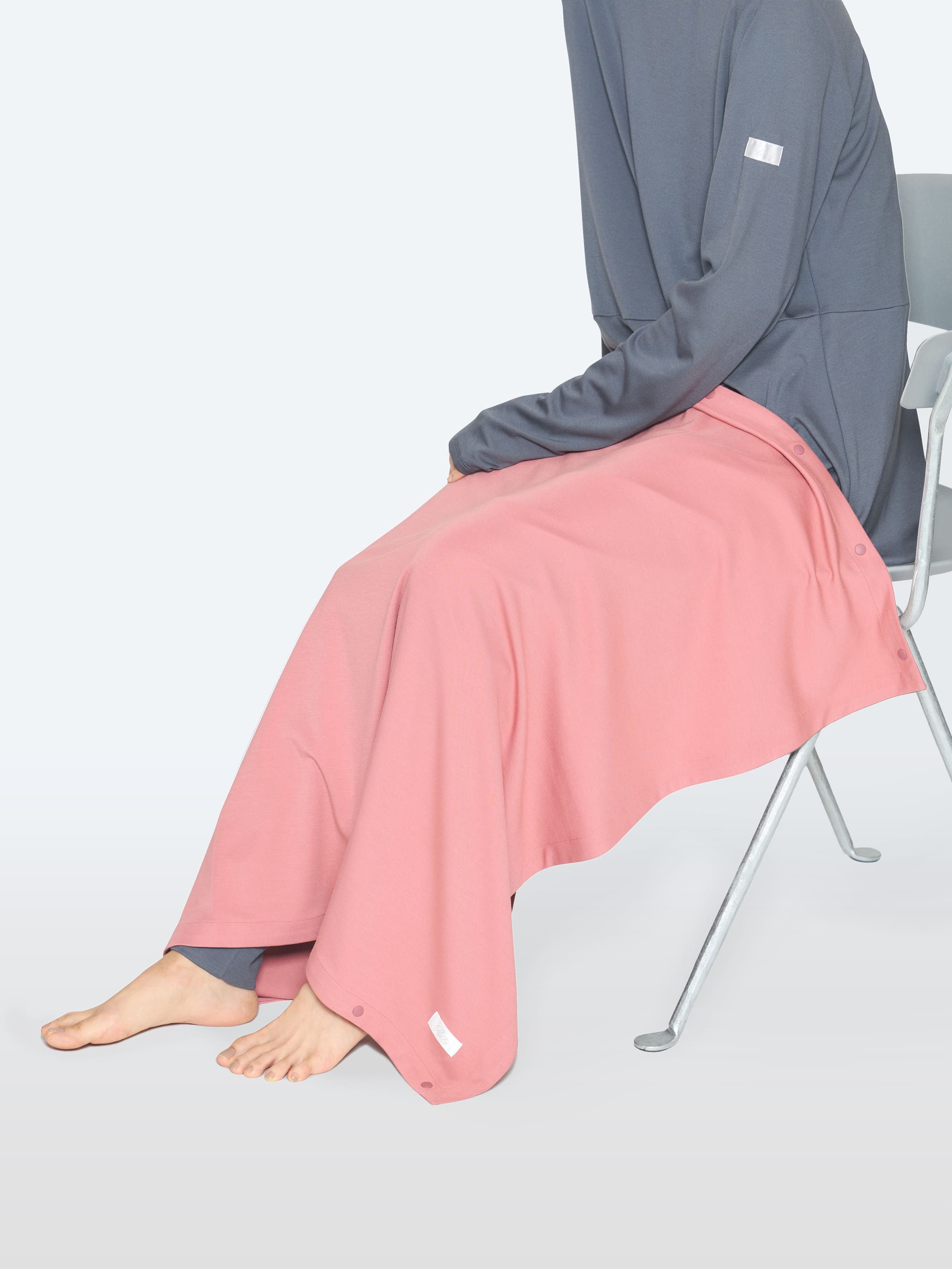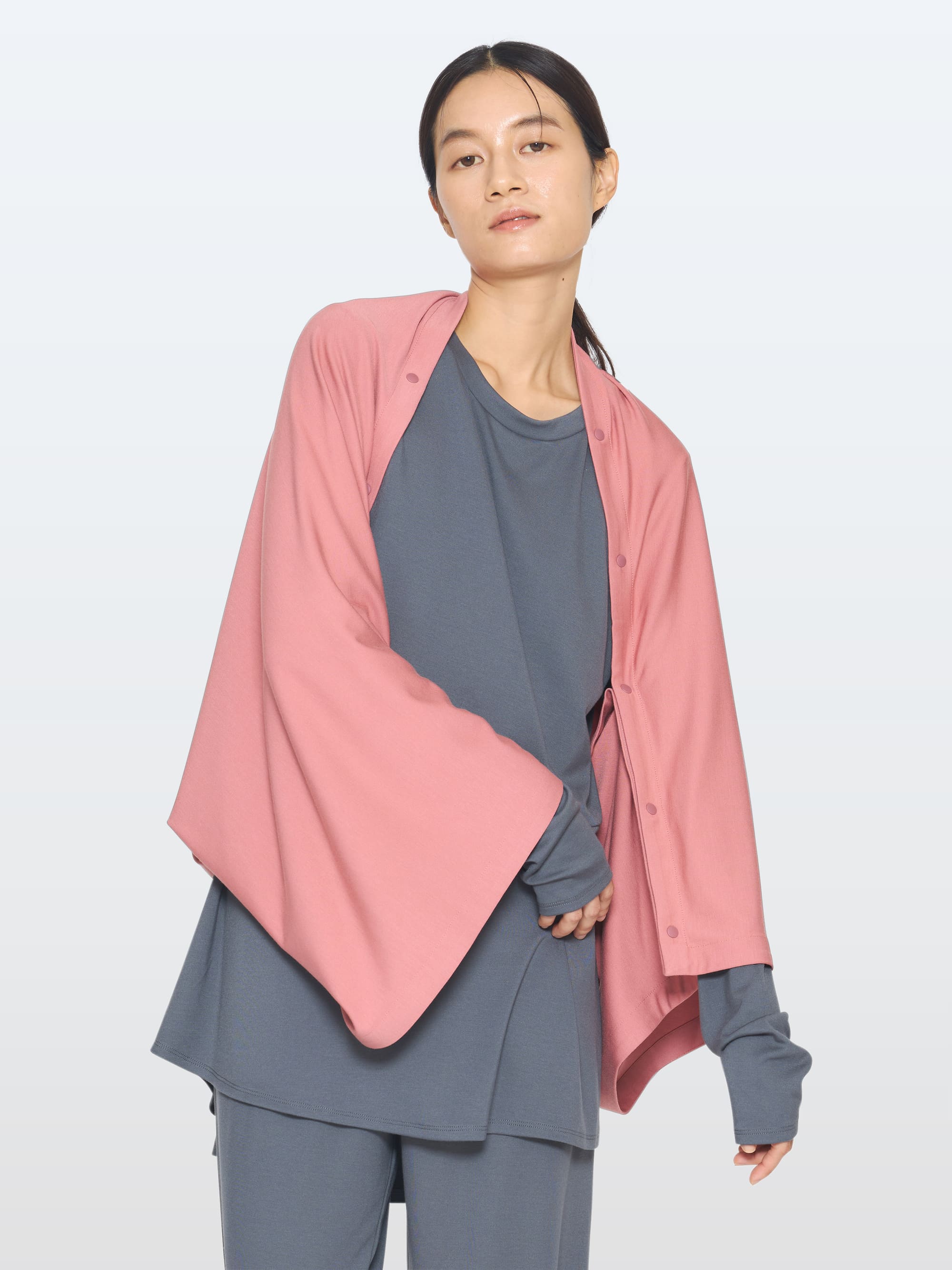 ボタン活用で動いてもずれにくい。薄手で持ち運びもできるため、外出時やエアコンの風対策に。