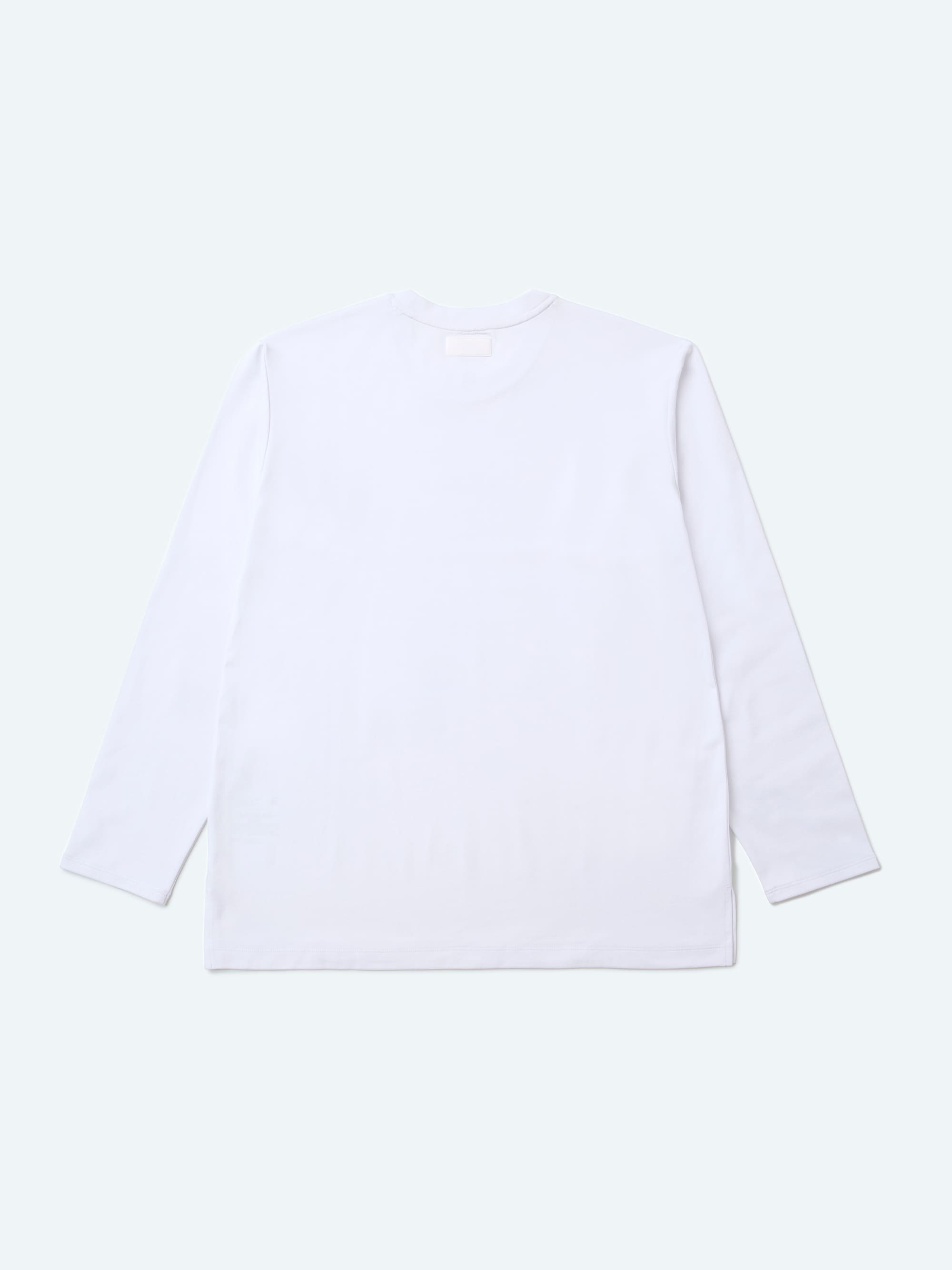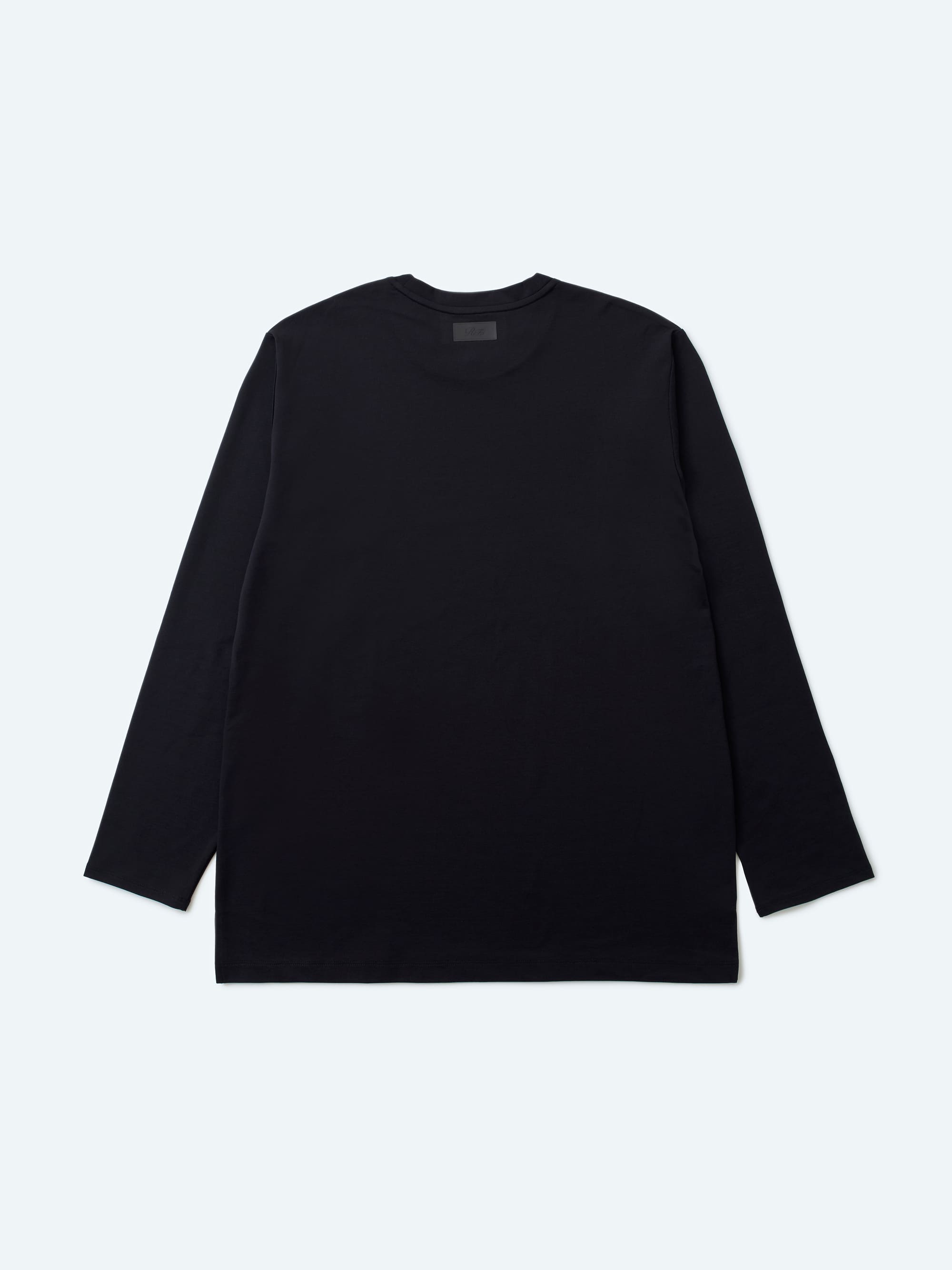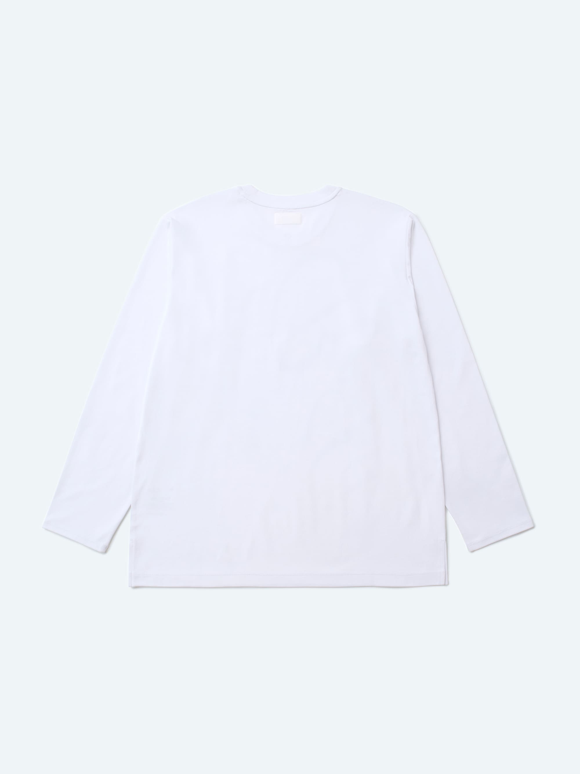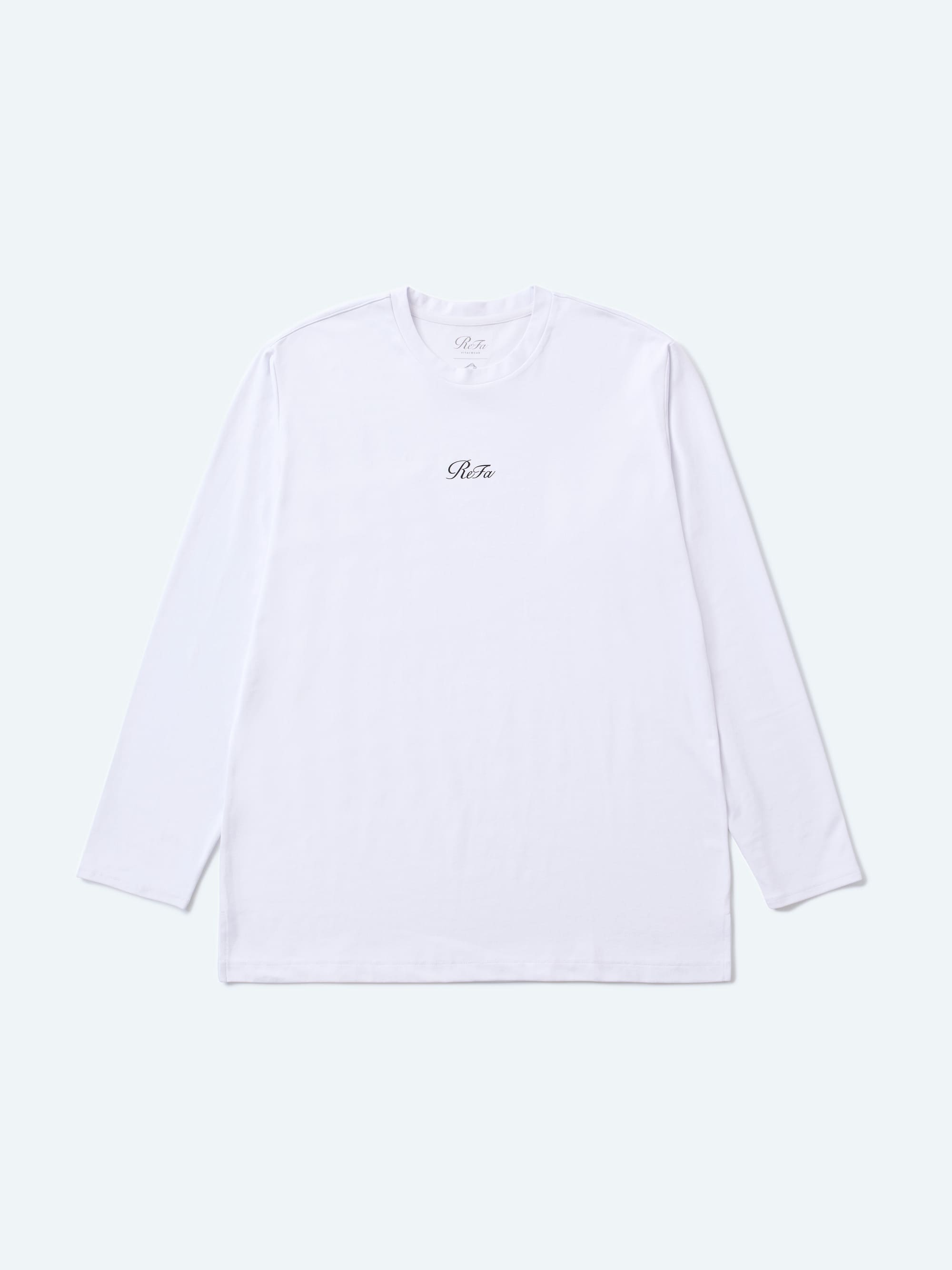 背面にブランドタグを配置。内側に縫い目が無いため、着ていても気にならない。