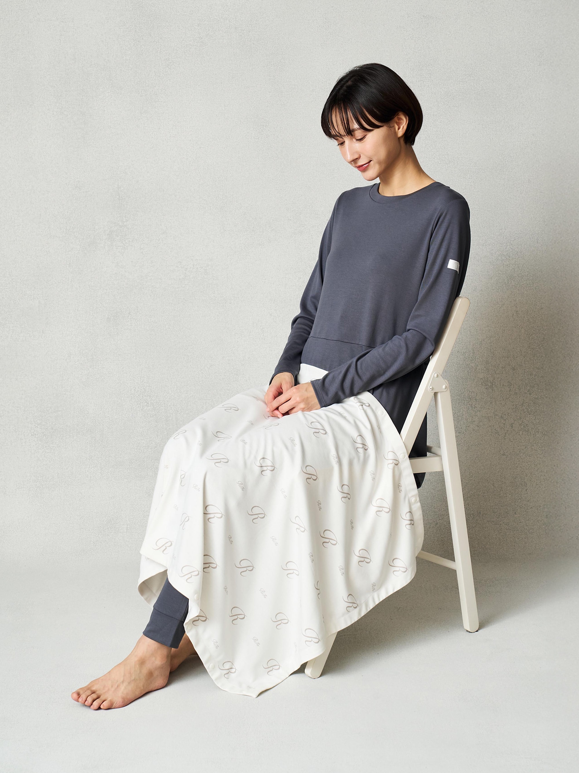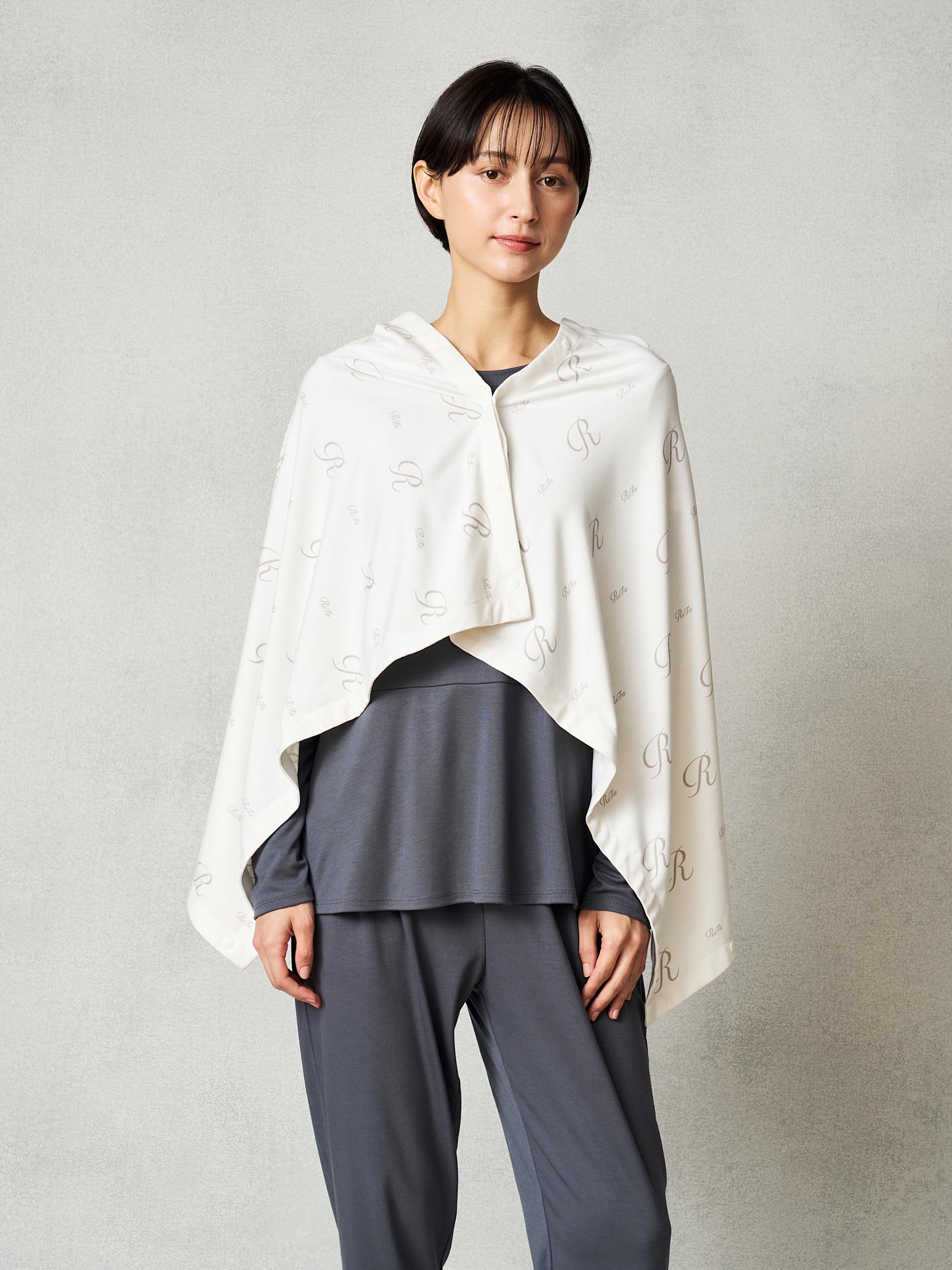 ボタン活用で動いてもずれにくい。薄手で持ち運びもできるため、外出時やエアコンの風対策に。