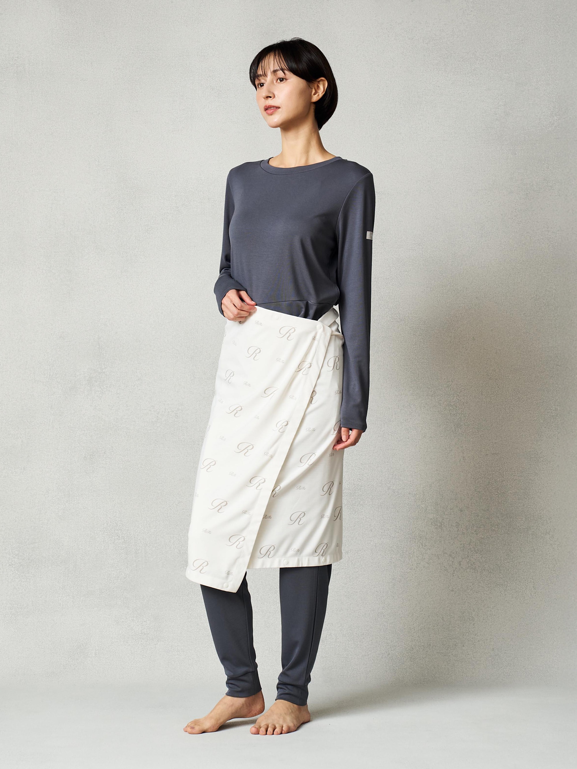• 巻きスカートでお腹や腰をカバー