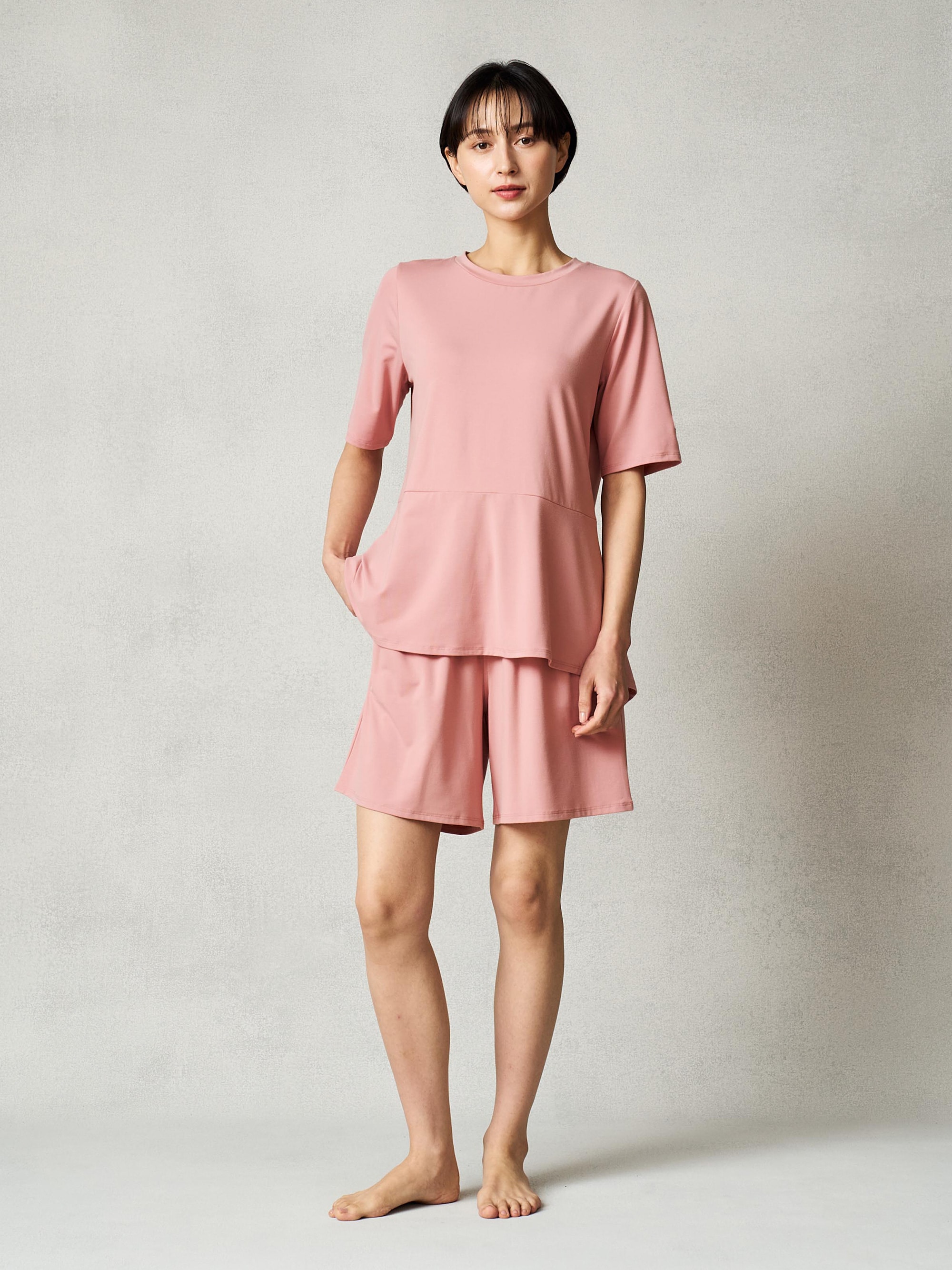ストレッチスムース ショートスリーブプルオーバー&ショートパンツ/WOMEN