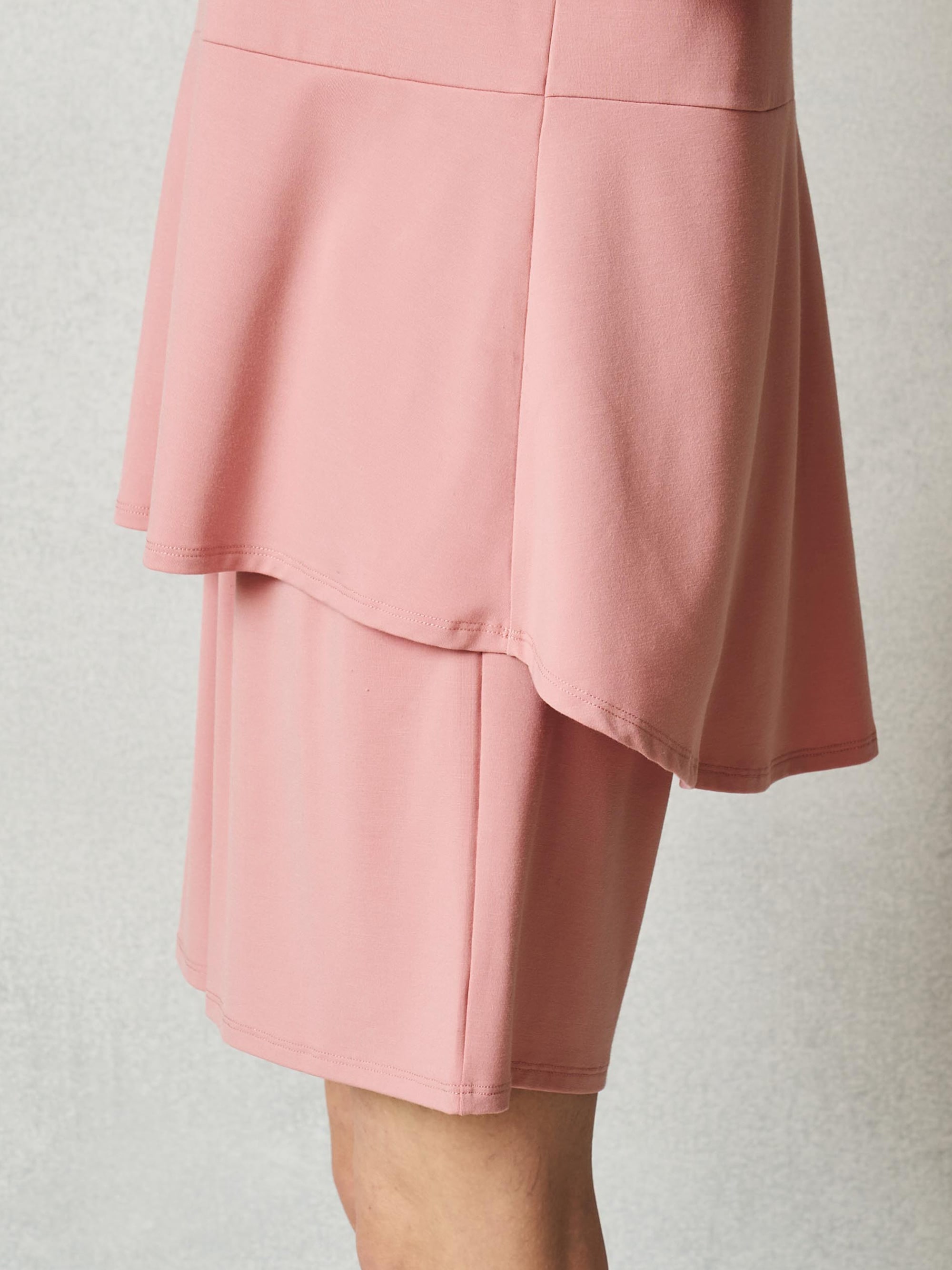 ゆとりのあるシルエットで、寝返りを打っても気にならない。部屋で過ごす時間も快適。 お尻をカバーする丈感、ペプラムシルエットで、着るだけでスタイルアップ。