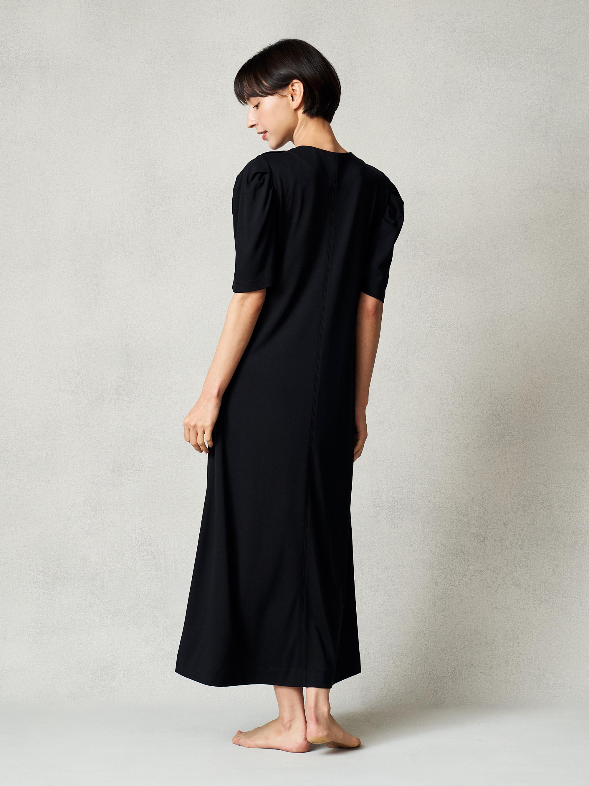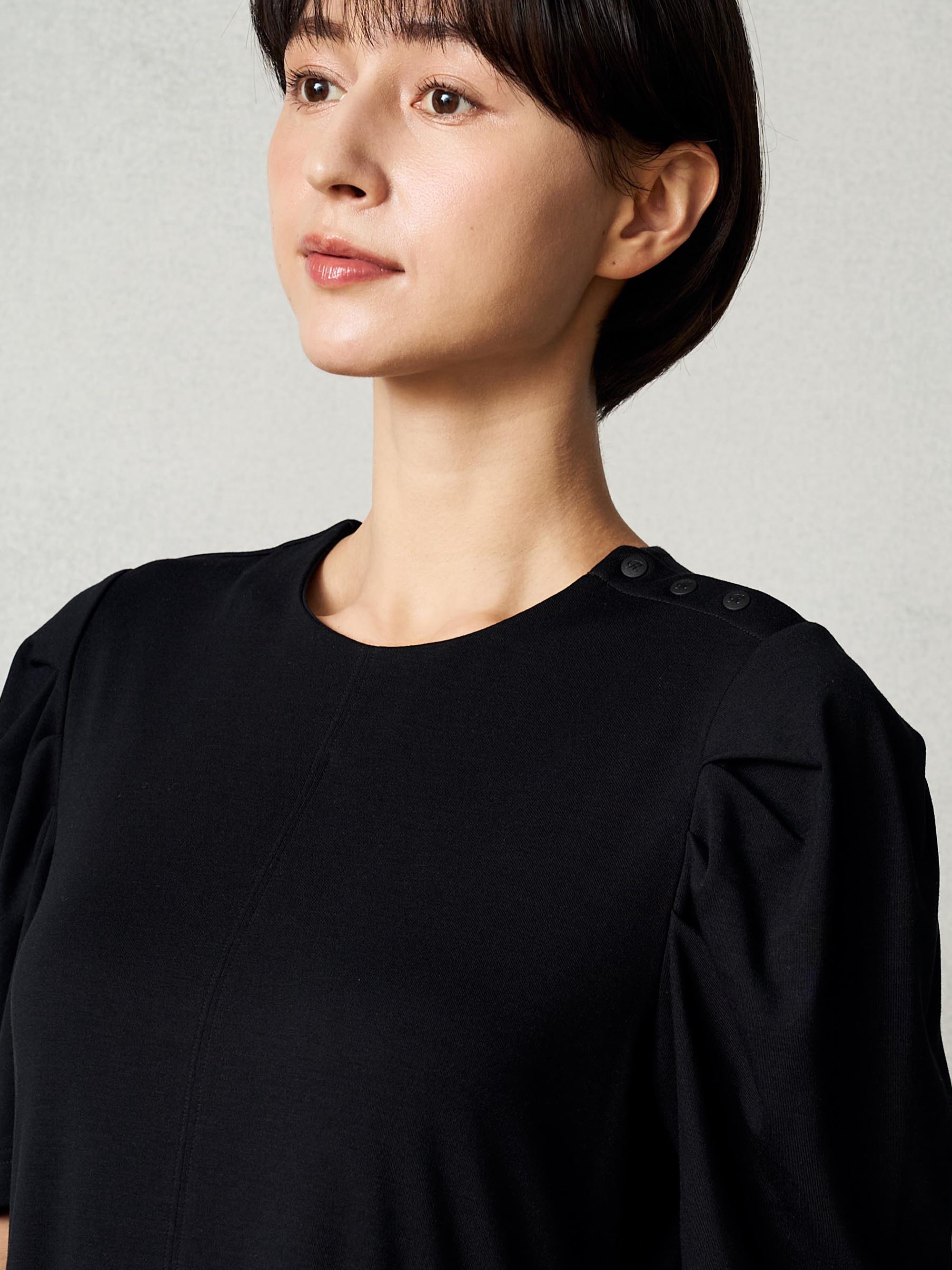 モイストスムース ギャザーショートスリーブマキシレングスシャツ