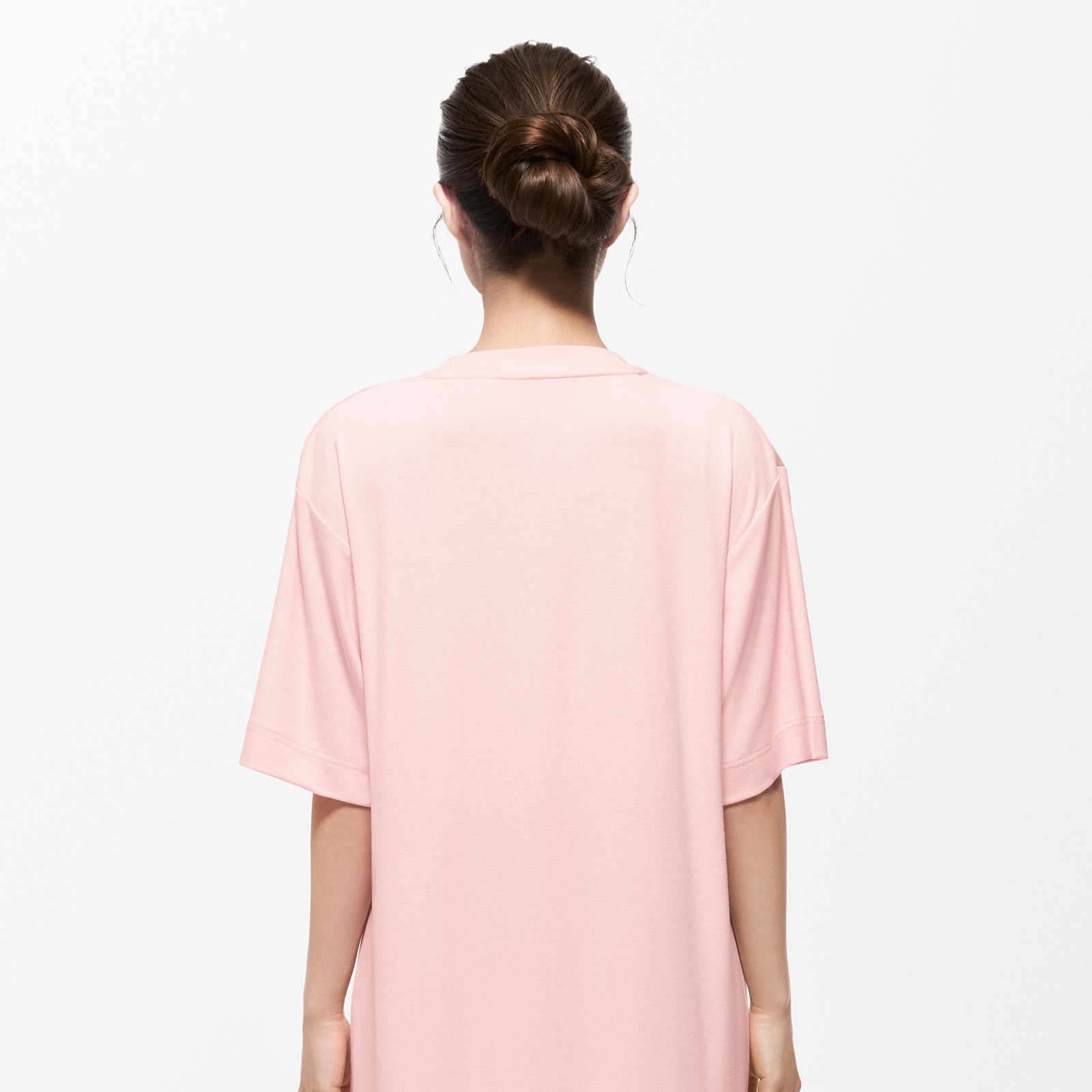 ゆったりとしたサイズ感と締め付けのないシルエットで寝返りしやすく、眠りを妨げません。ロゴを刺繍加工にしないことで肌へのストレスを解消し、快適な睡眠を叶えます。