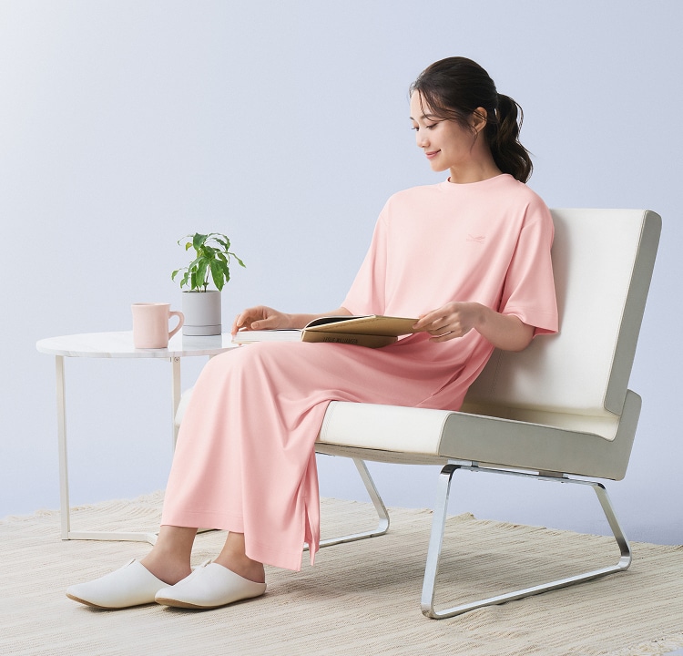 身体を締め付けないリラックス設計で、家事の時間はもちろん、お家でのくつろぎ時間にも優しく寄り添います。