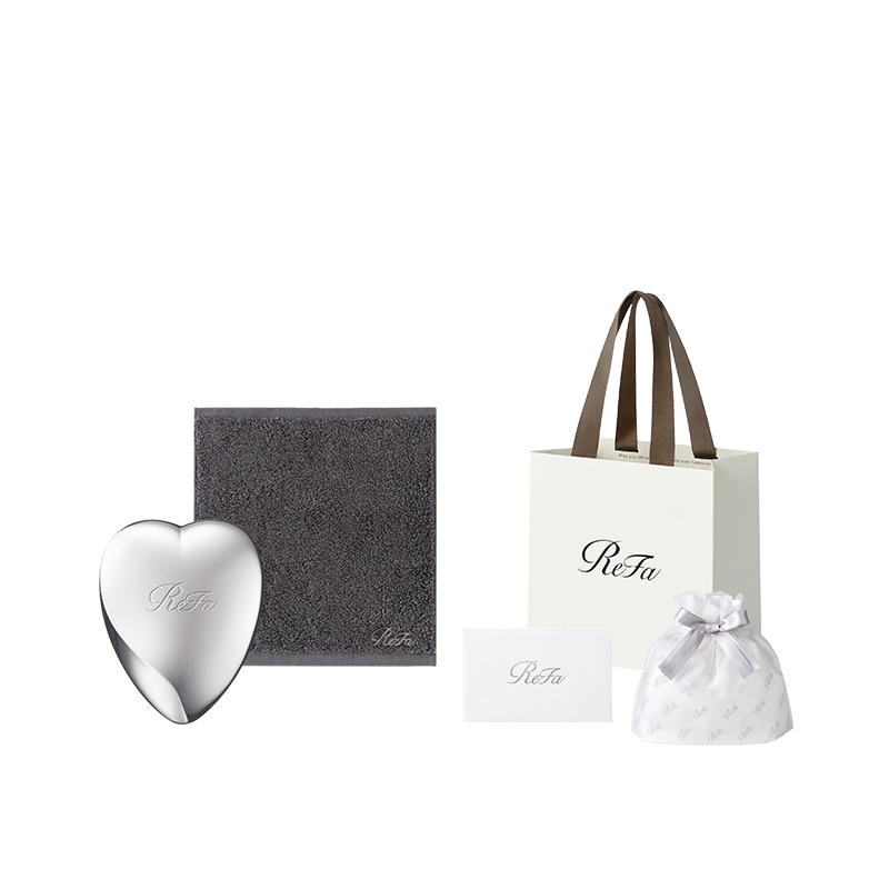 【ReFaプレミアムラッピングセット SS】リファハンドタオル(ダークグレー) + リファハートブラシミニ(シルバー)