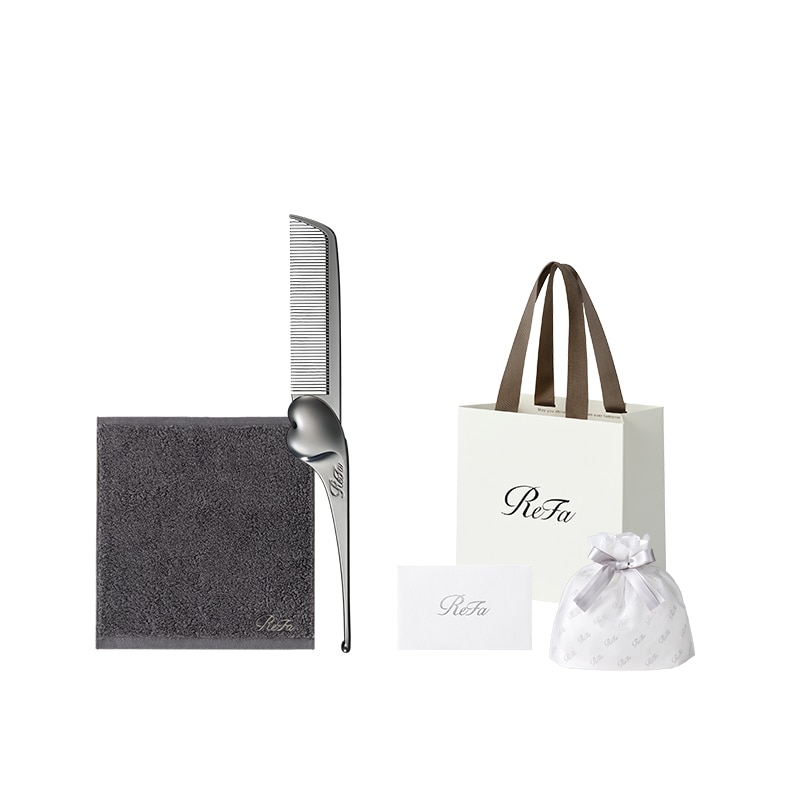 【ReFaプレミアムラッピングセット SS】リファハンドタオル(ダークグレー) + リファハートコーム アイラ クロム