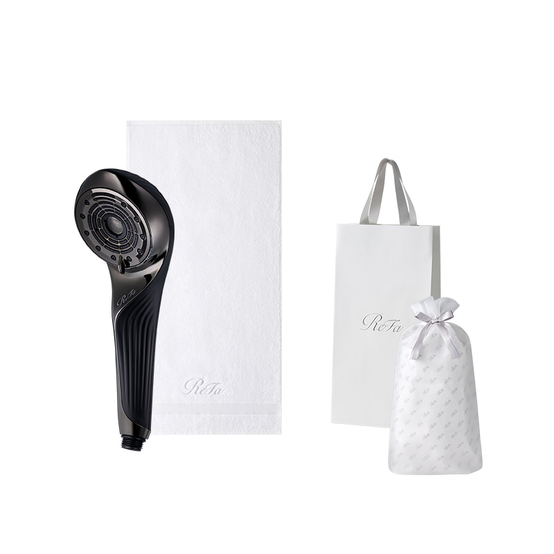 【ReFaギフトラッピングセット S+】リファファインバブル U(ブラック) & リファミニバスタオル(ホワイト)