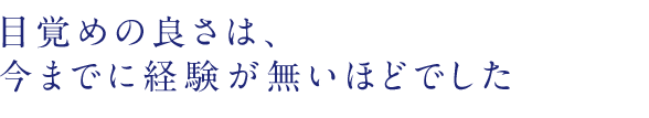 今まで寝つきが悪く、眠りが浅かったのですが、この商品を使い始めて、楽になりました。背筋がピンと伸び、起きた時の目覚めの良さは、今までに経験が無いほどでした。