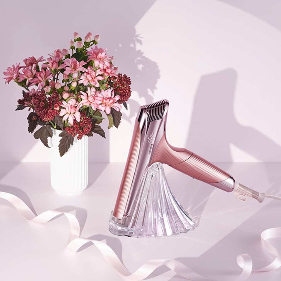 吹出口が広くなったことで、風量が強くても、柔らかく広がり髪が絡まりにくい風に。