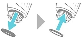 ※LIXIL(INAX)は付属のゴムパッキン(細)に交換が必要です。ヘッドに取り付けられているゴムパッキンをはずし、付属のゴムパッキン(細)を取り付けてください。