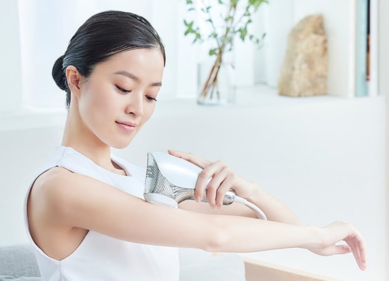 ReFaの光美容器初の冷却機能「アイストーニングシステム」を搭載。肌に直接触れる面を約10℃に冷やし、照射時の熱ダメージと痛みを和らげます。