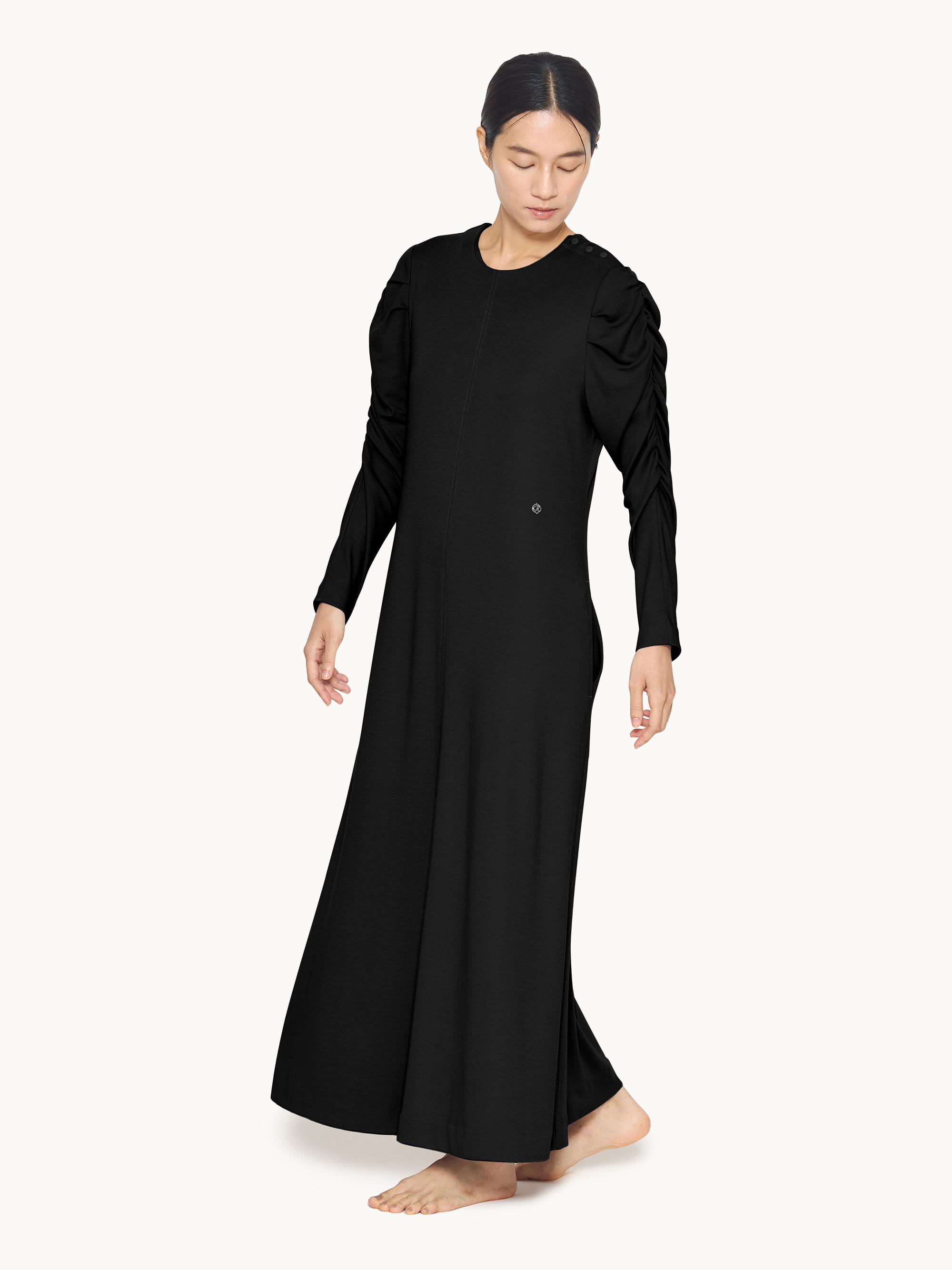 モイストスムース ギャザースリーブマキシレングスシャツ(ブラック)
