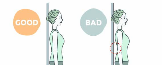正しい姿勢をセルフチェックする方法は、壁立ちテストがおすすめです。