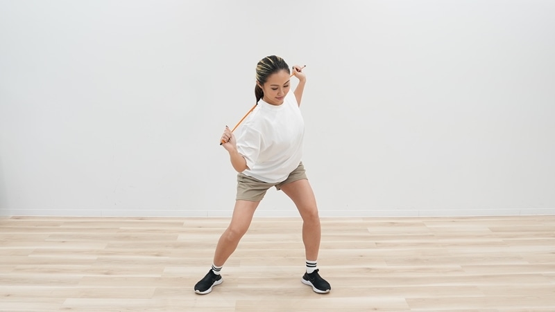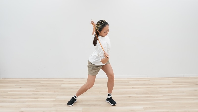 スクワットの姿勢のまま、スイング動作を
