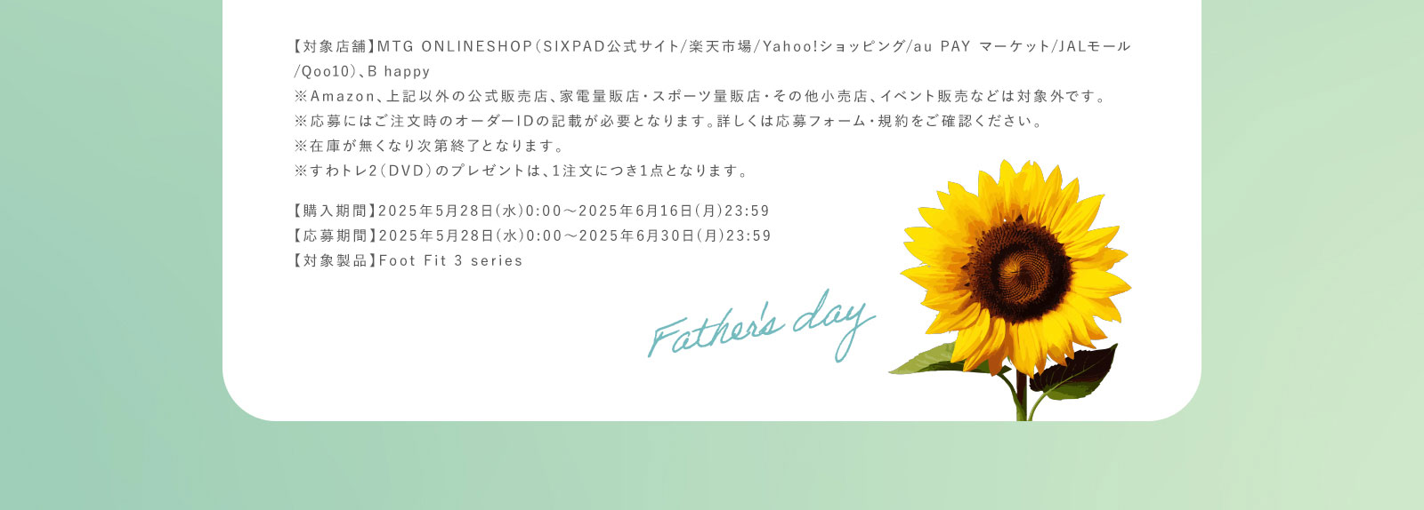 - ※Foot Fit 3 HEAT (BLACK EDITION含む)のご購入時のみ対象です。