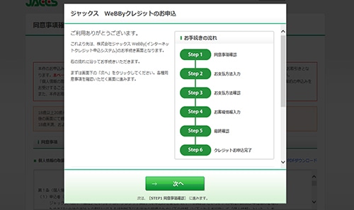 (株)ジャックスのお申込み画面にて、